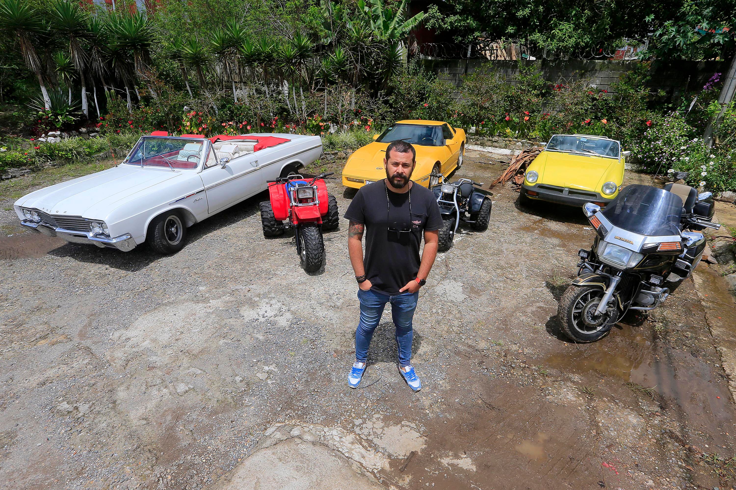 Por eso, arrancaremos con el tercer carro de su colección, un Buick Skylark modelo 1964 que tiene un motor de 5 mil centímetros cúbicos y su triciclo Honda 200X.