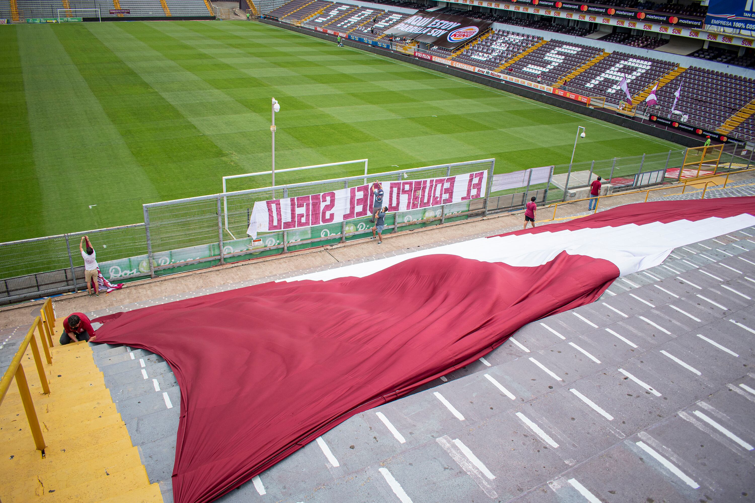 Las siluetas fueron colocadas en las plateas este y oeste para meter un poquito de ambiente en un estadio vacío, en el que hubo grandes banderas morado y blanco en otros sectores de la Cueva.