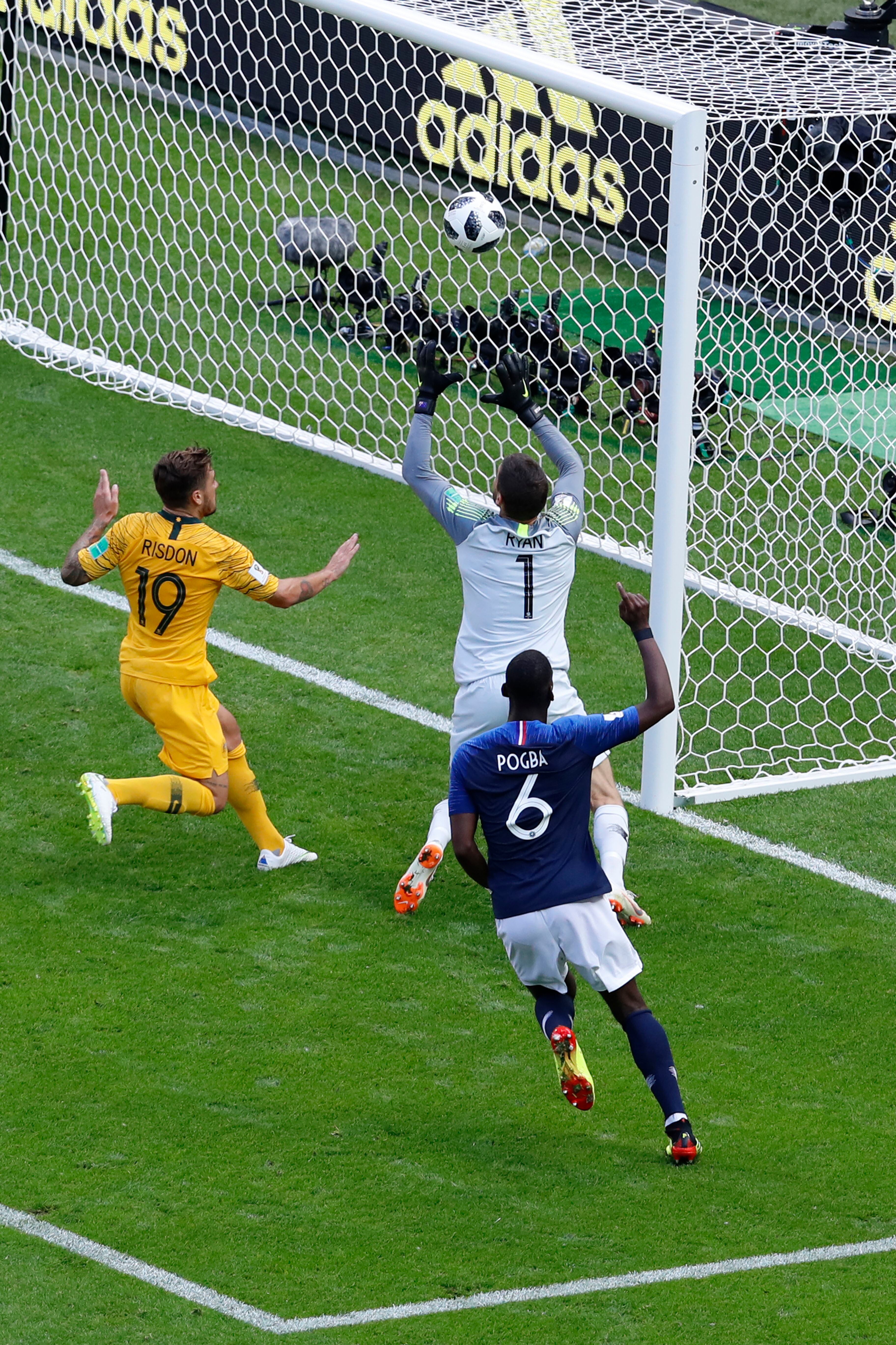Paul Pogba, volante galo, dejó de ser el autor del tanto que le dio a Francia la victoria 2-1 sobre Australia en el Mundial, el sábado.