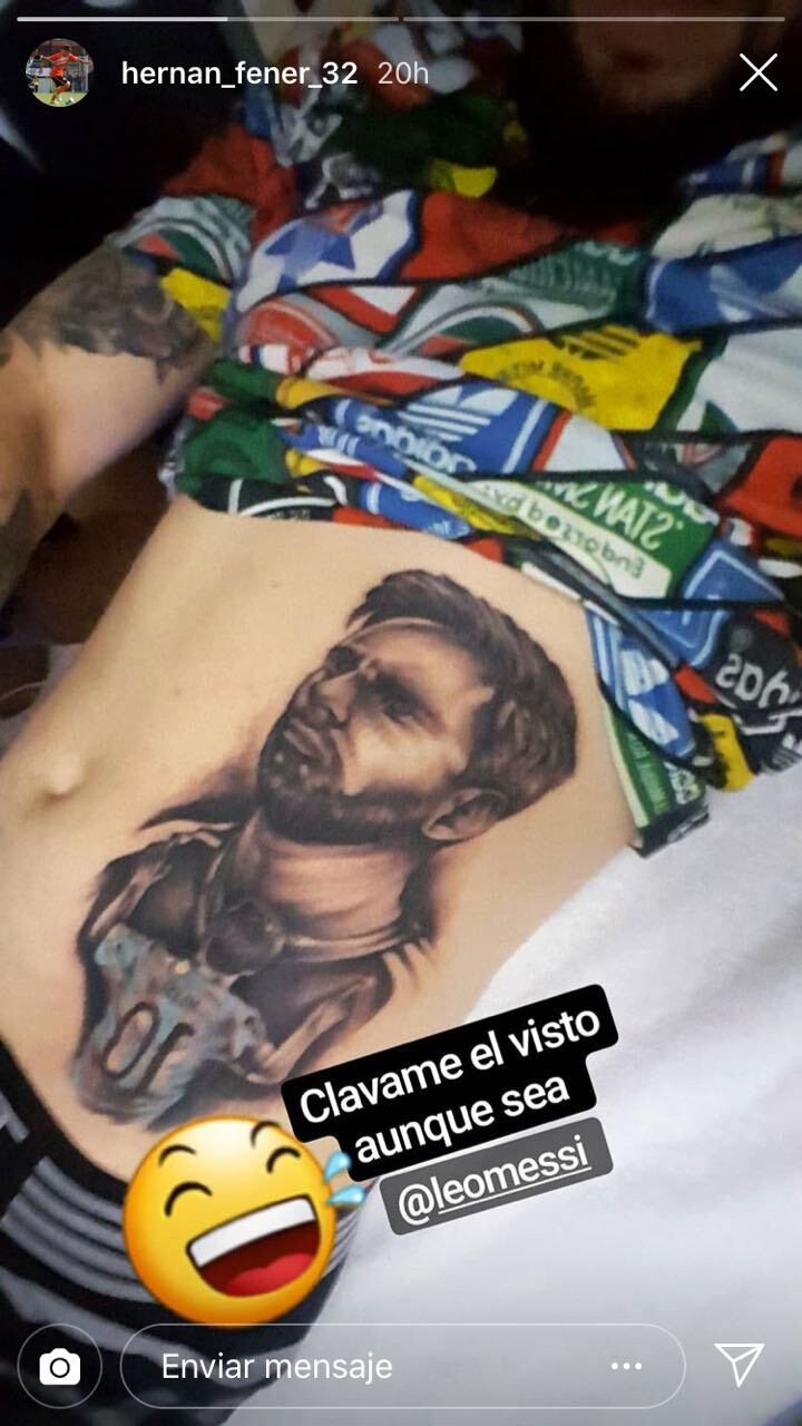 Hernán además tiene la cara de Lionel Messi del lado izquierdo de las costillas y en el brazo derecho la cara y medio cuerpo de Carlos Tévez.