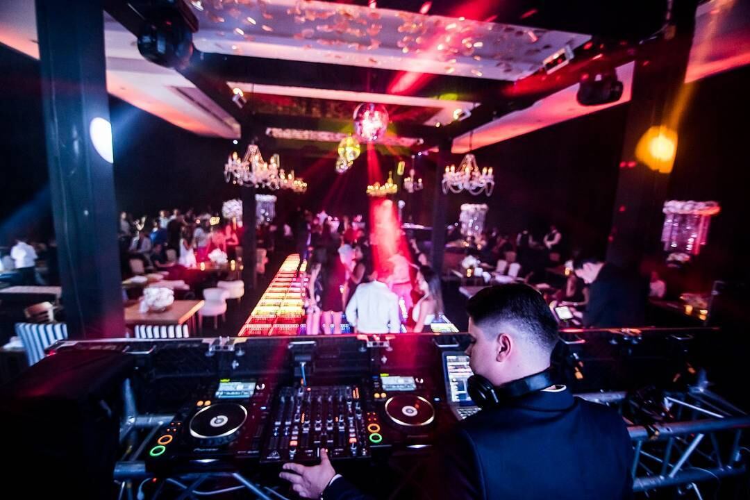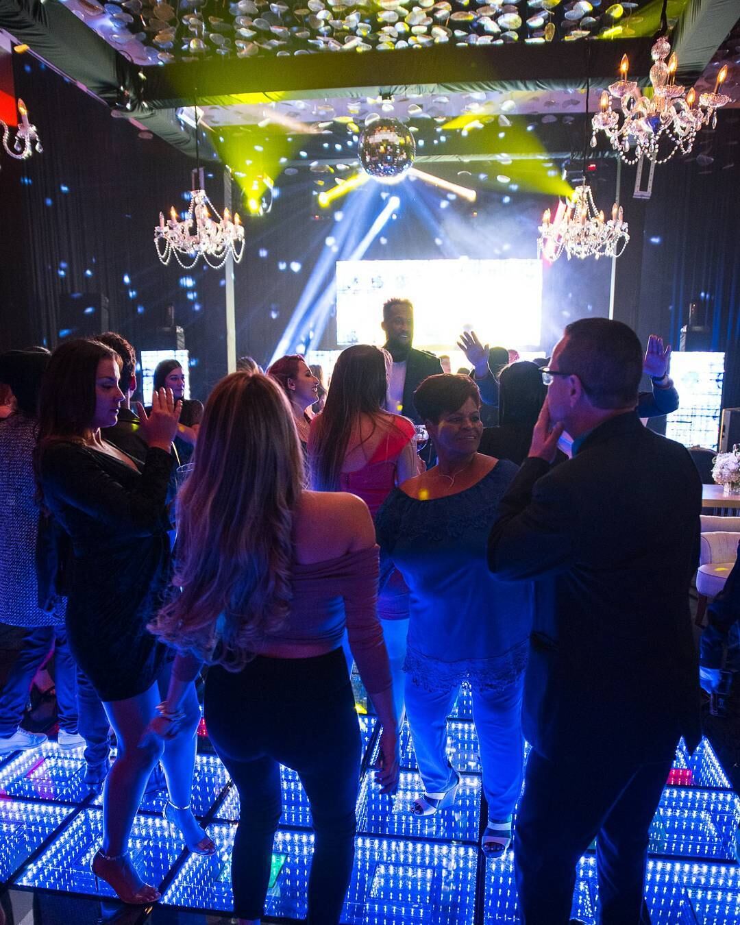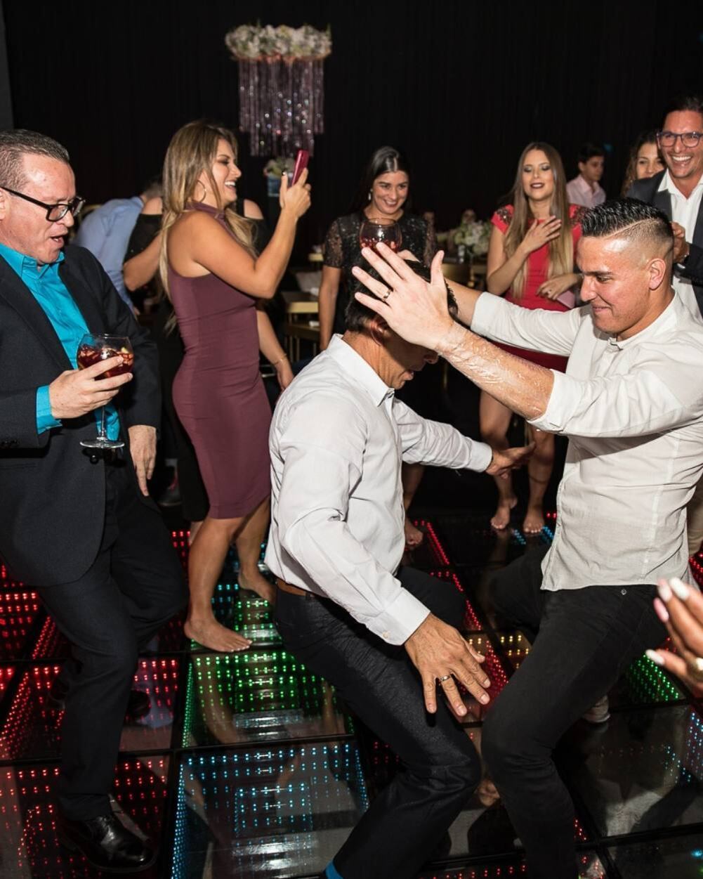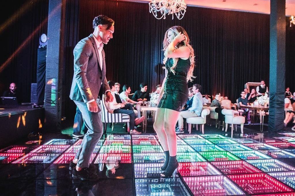 El jolgorio contó con un ambiente extravagante, lleno de luces, colores, candelabros guindando en el techo y hasta una pista de baile iluminada para que los invitados demostraran sus mejores pasos.