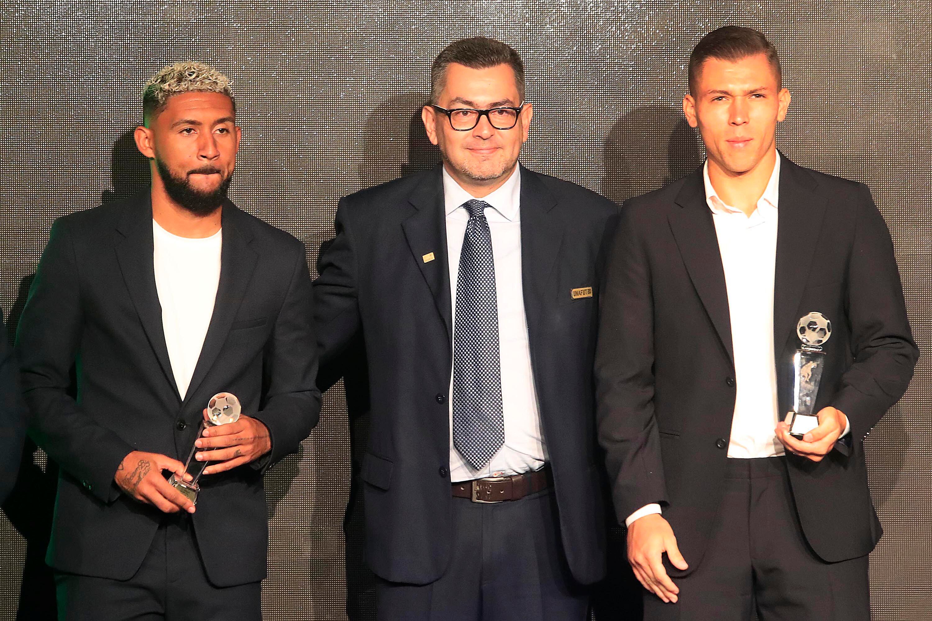 El goleador del Torneo de Apertura 2022, el paraguayo Fernando Lesme, fue otro de los jugadores que no falló y llegó vestido totalmente de negro a recoger su galardón. Al joven sudamericano lo acompañó Ricardo Chacón, quien representó a Alajuelense para retirar algunos premios y don Ricardo llegó con un conjunto bicolor, de saco color negro, con pantalón en tono gris.