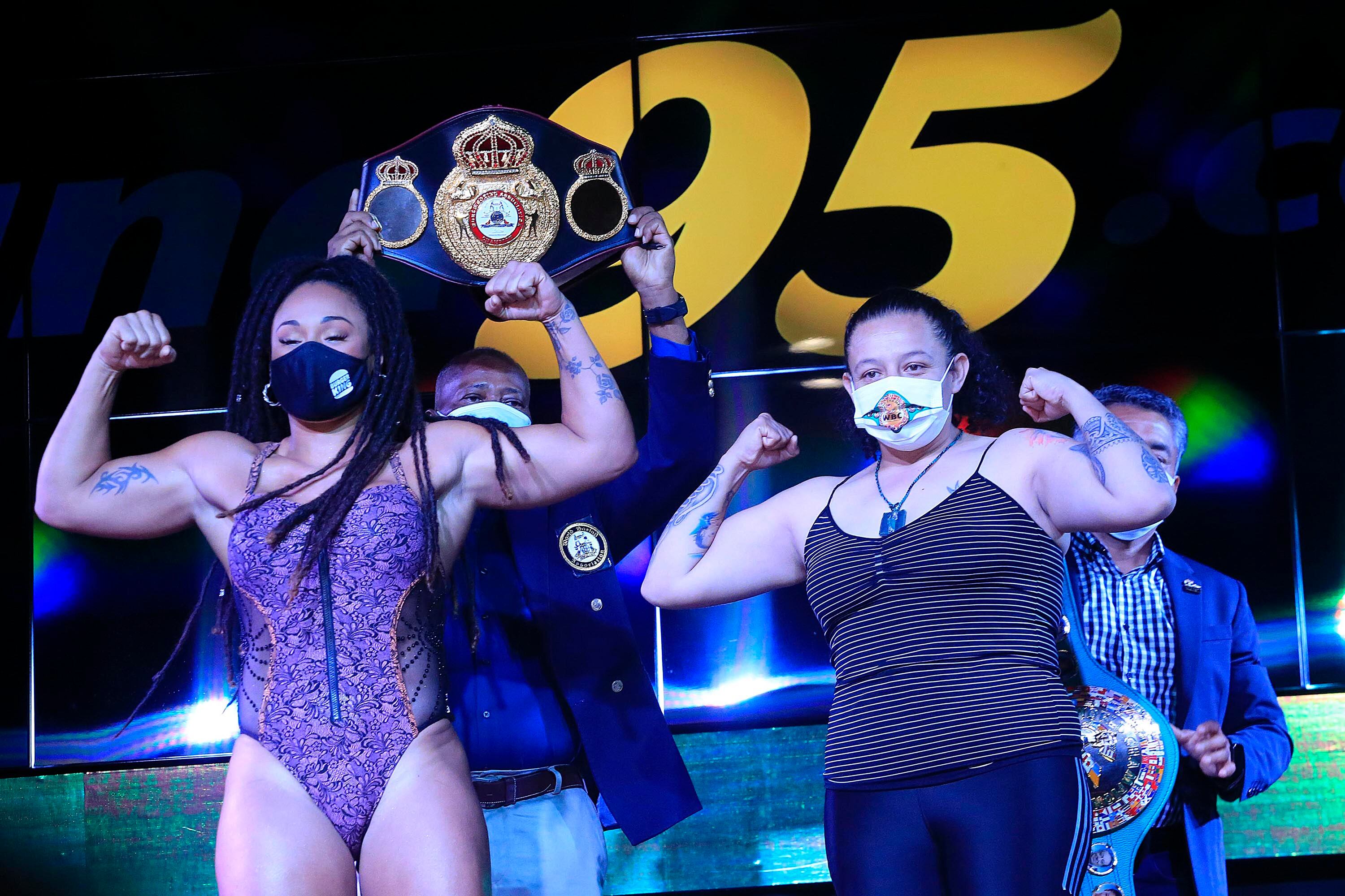 El pesaje de las pugilistas se realizó este viernes y Hanna pesó 177,2 libras, mientras que la mexicana 176,8. Ambos pesos fueron superiores a las 175 libras, que es el límite en cuanto a la categoría de semipesado femenino, pero se permitieron por disputarse dos títulos mundiales.