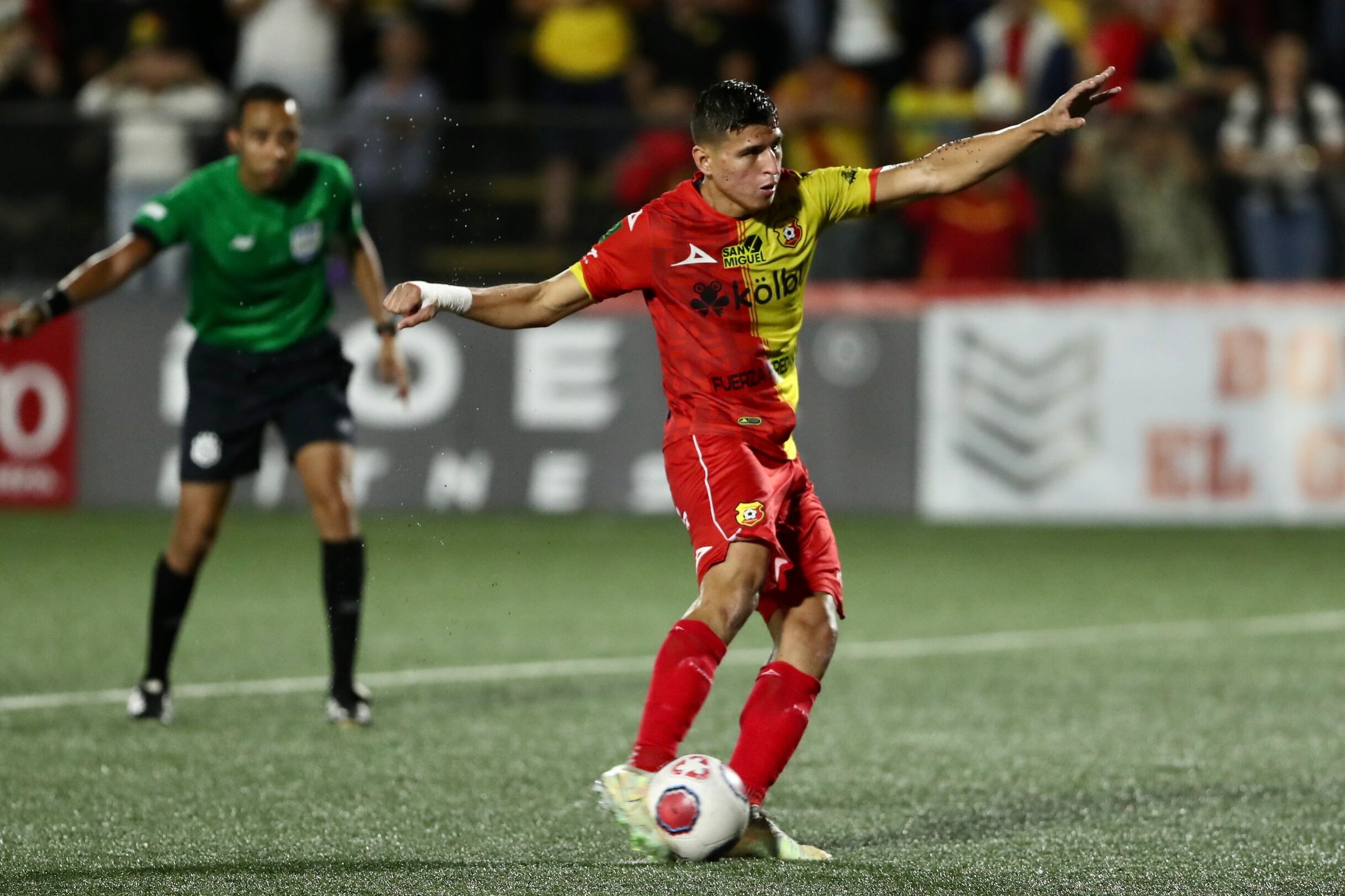 Después, al 50′ del primer tiempo, vino la jugada polémica. Yeltsin Tejeda intentó hacer una palomita, en un rebote, y Carlos Barahona despejó a media altura, pero al hacer eso, el brumoso pegó al florense y el línea le sopló a Pineda que señaló el manchón blanco. Penal que ejecutó Anthony Contreras y mandó al Team al descanso con ventaja.