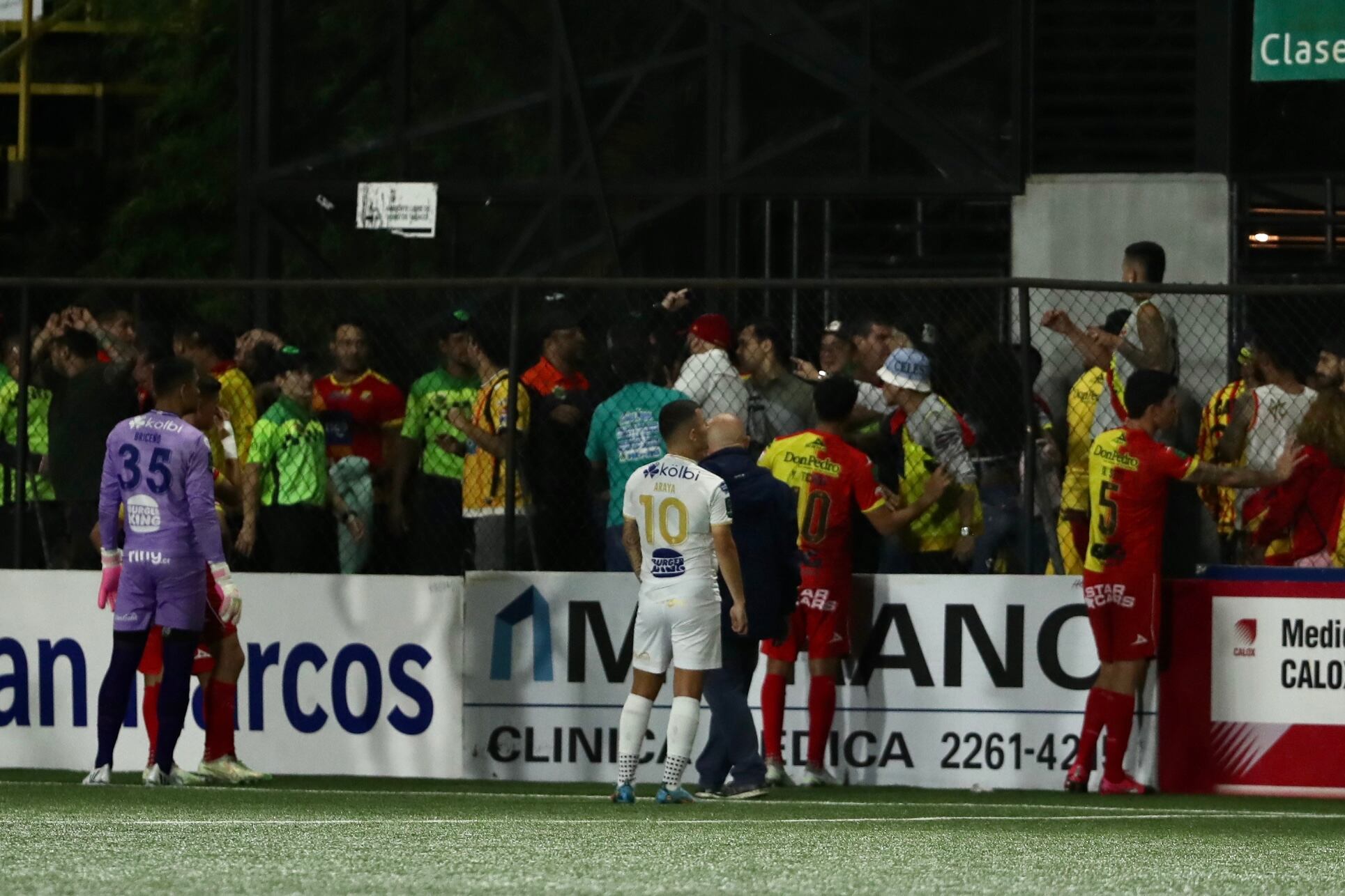 Menos mal que no eran muchos aficionados, pero incluso tuvo que intervenir la Fuerza Pública, que se llevó a uno de los pachucos y las cosas se medio normalizaron.