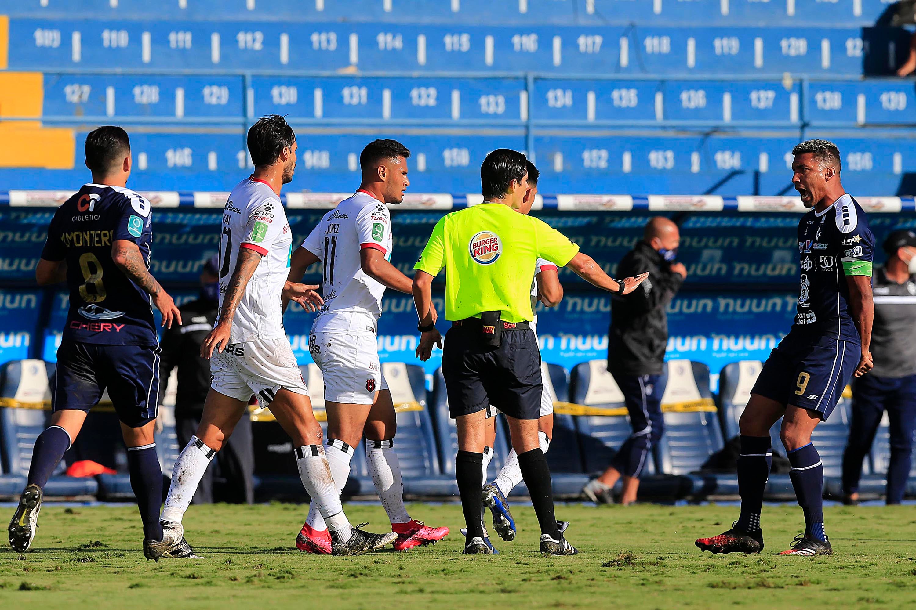 El Pelícano se quejó por una falta clara de Bryan Ruiz sobre Byron Bonilla que era penal y por una mano de Jurguens Montenegro en el segundo gol erizo, la cual se dejó ver hasta que Futv la vio con lupa.