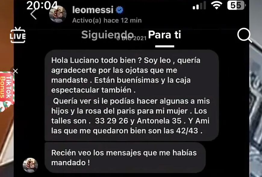 Un tiempo después, por medio de Instagram, el mismo Messi, ya consagrado como campeón del mundo, decidió dar un giro inesperado a esta historia y le envío un mensaje a la marca para solicitarle otros pares, con especificaciones precisas de las tallas de Antonela y sus tres hijos: Thiago, Ciro y Mateo.