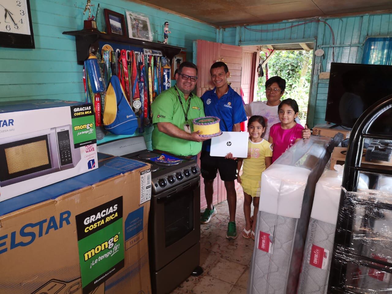 Un gran peso económico le quitó de encima Grupo Monge al atleta Junior Oporta, pues lo sorprendió este viernes con muebles y electrodomésticos para su casa en San Ramón.