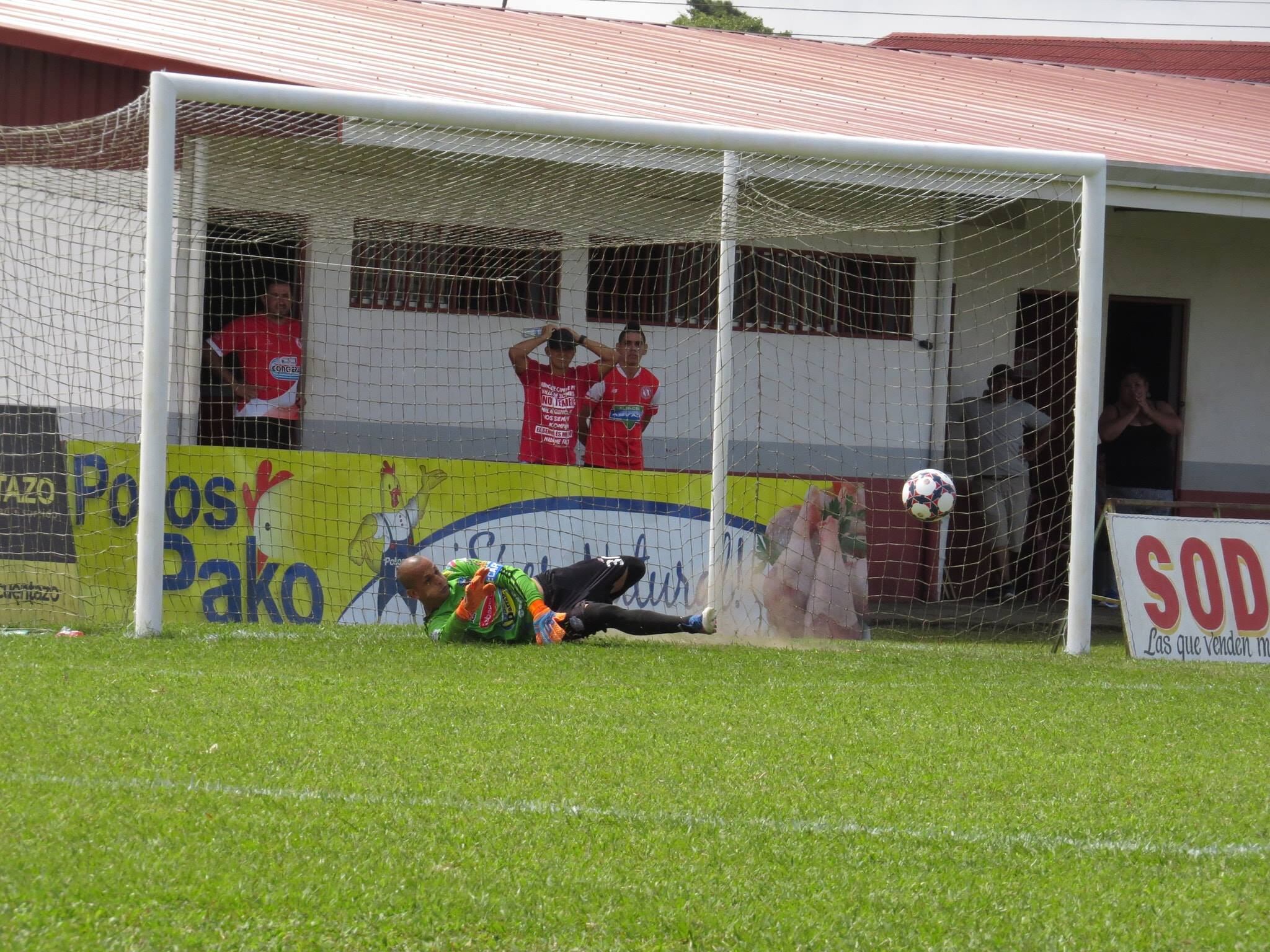 Gracias a esa actitud, la primera opción ofensiva no tardó en llegar, ya que en el minuto 20, el jugador poeta Kevin Benítez ingresó con pelota dominada al área rival y fue derribado por William Fernández. Era la oportunidad propicia para descontar y meterse en la pelea, pero Berny Solórzano no contó con la felina reacción del portero Néstor Mena, quien se estiró para desviar la pecosa y mantener su marco invicto. San Ramón estaba más salado que el último maní de la bolsa.