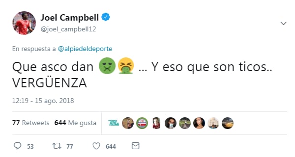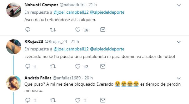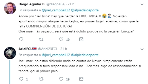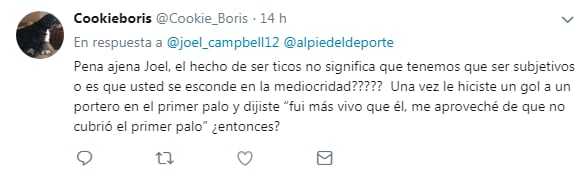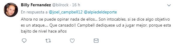 Joel Campbell aprovechó su tiempo libre de este miércoles feriado para arremeter contra la página de Everardo Herrera, Al pie del deporte, y salió en defensa del guardameta tico Keylor Navas. Sin embargo, se le volteó la tortilla con su comentario en redes sociales.