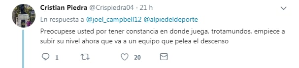 Casi de inmediato, las réplicas salieron a relucir y en la cuenta de Twitter del jugador, de la serie A de Italia, se armó un broncón.