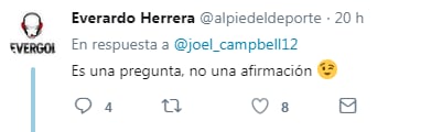 Aunque se desconoce si es el propio Herrera es quien maneja su página, la primera reacción en el tuit de Joel está a su nombre: “Es una pregunta, no una afirmación”, en compañía de un emoticón.