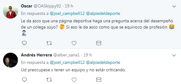 Campbell aseguró que la página de Herrera“da asco” por un encuesta que publicó en Twitter, donde cuestionó si Navas pudo haber hecho más en el primer gol que marcó el Atlético de Madrid contra el Real Madrid en la Supercopa de Europa.