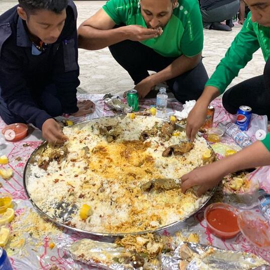 “Hoy (12 de marzo) me tocó probar la cultura de Catar en un plato típico y con la forma típica de comer aquí”, publicó el jugador junto a varias fotos en su cuenta de Instagram.