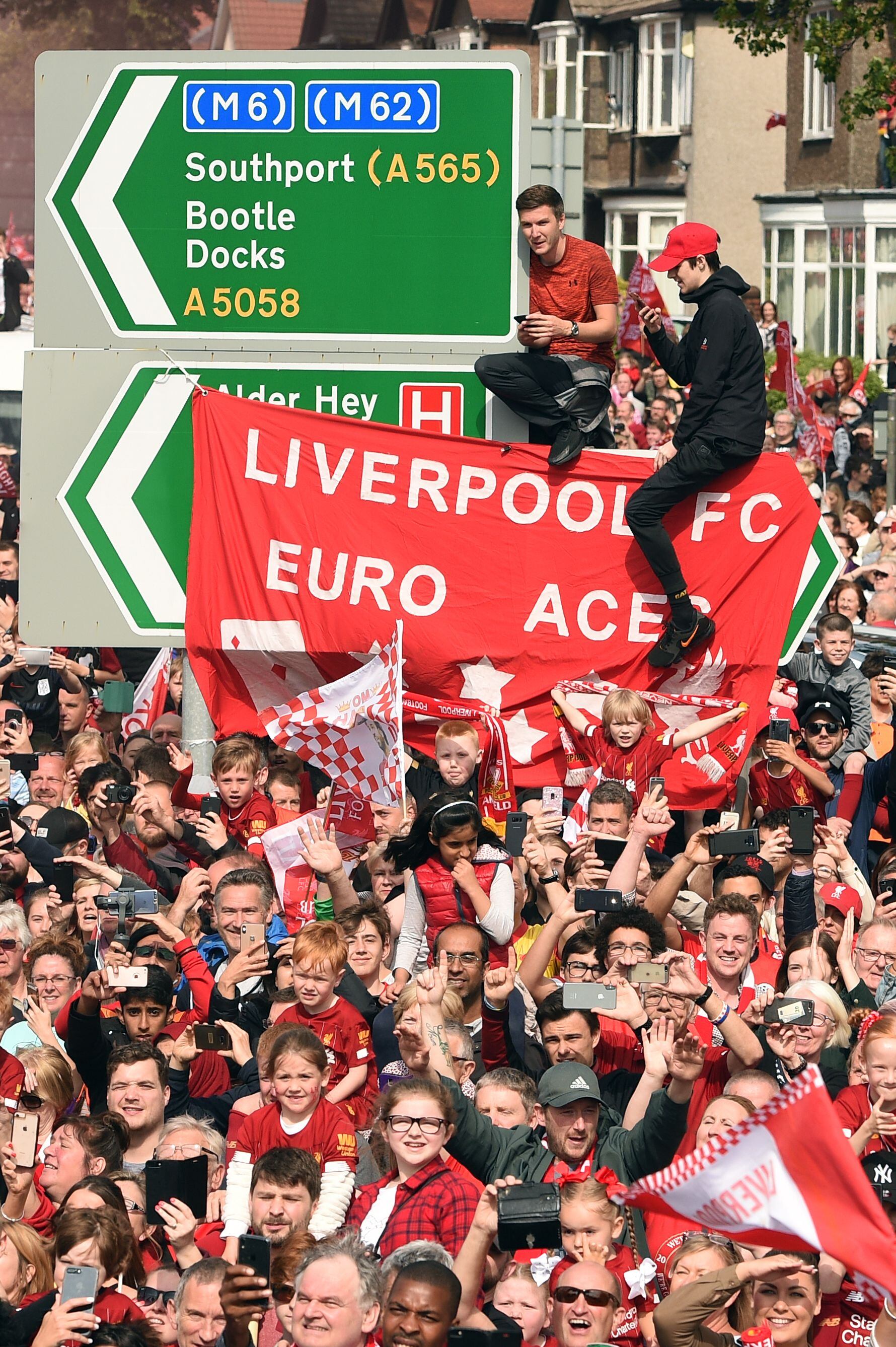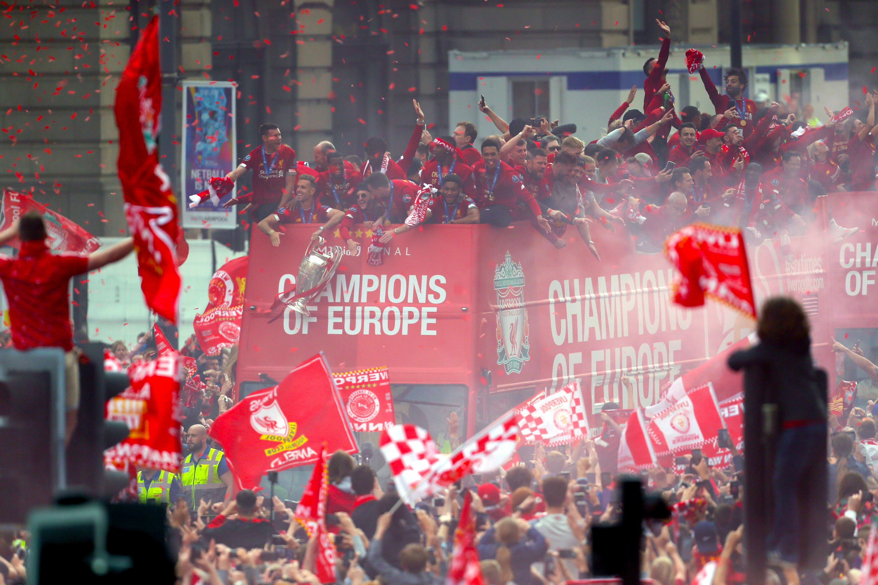 El entrenador Jürgen Klopp y los héroes pasearon mostrando la Orejona en un desfile de varios kilómetros por el centro de la ciudad que vio nacer a los Beatles, debía conducirles hasta el frente marítimo de la ciudad.