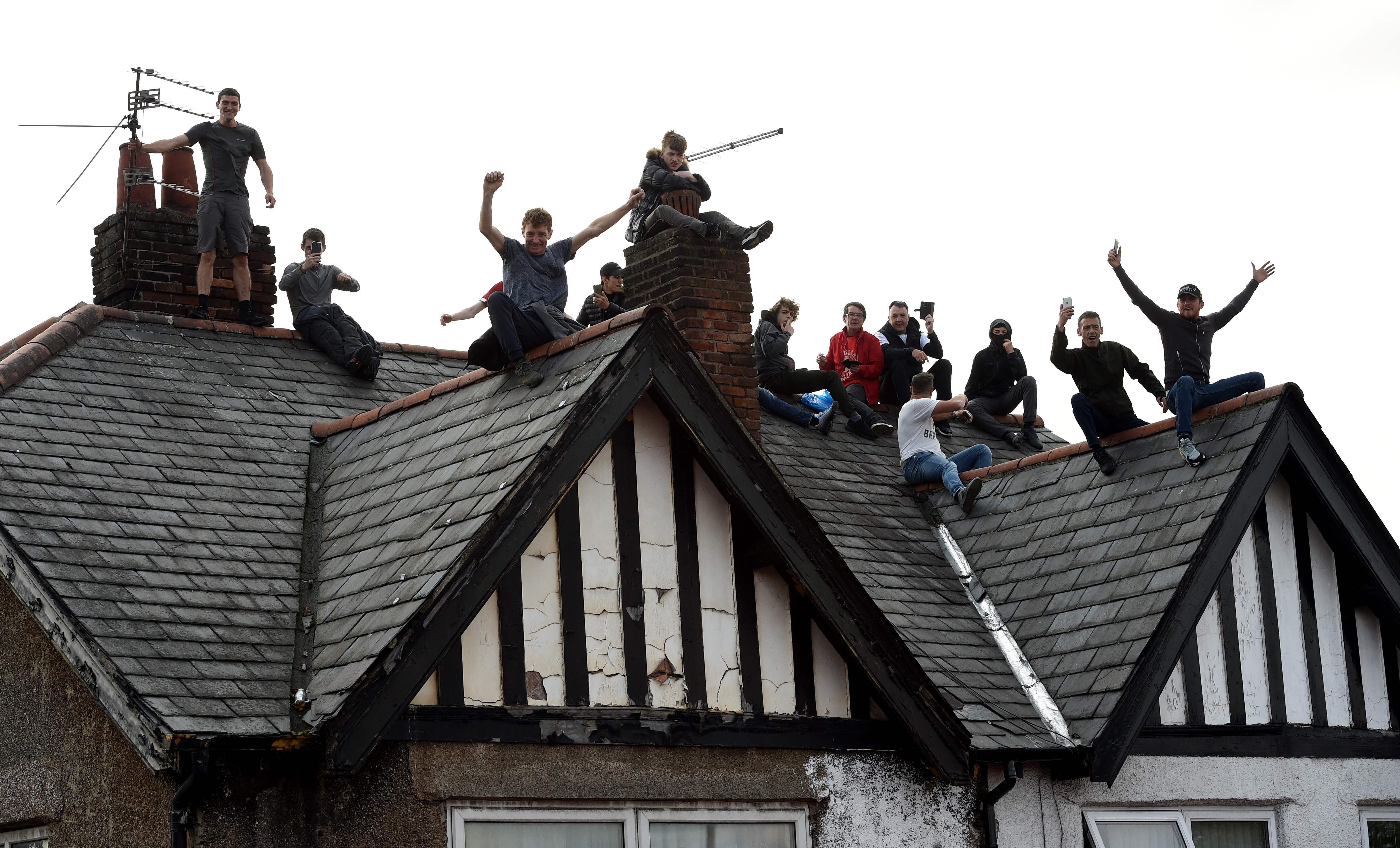 Los hinchas del Liverpool no esperaron a la tarde del domingo para festejar el título, ya que muchos de ellos comenzaron los festejos tras el partido y siguieron durante toda la madrugada y vestidos con la mítica camiseta roja de su equipo.