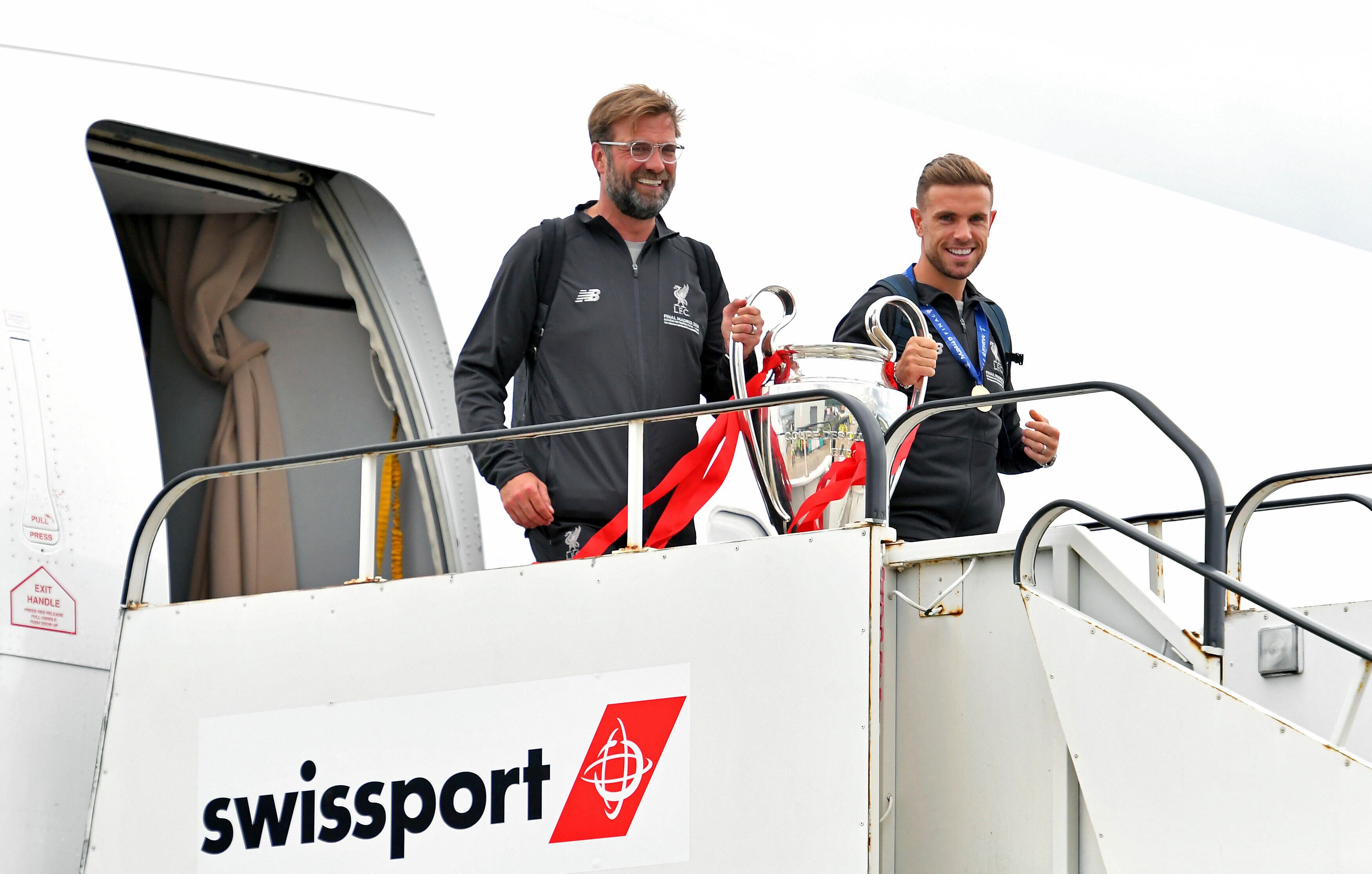 La copa fue transportada hasta el escenario por los exjugadores Ian Rush del Liverpool y Ledley King, del Tottenham. El capitán Henderson, como manda el protocolo, elevó el trofeo al cielo de Madrid. Después, la euforia se desató en el podio, con todo el plantel de Jurgen Klopp con la Copa en sus manos.