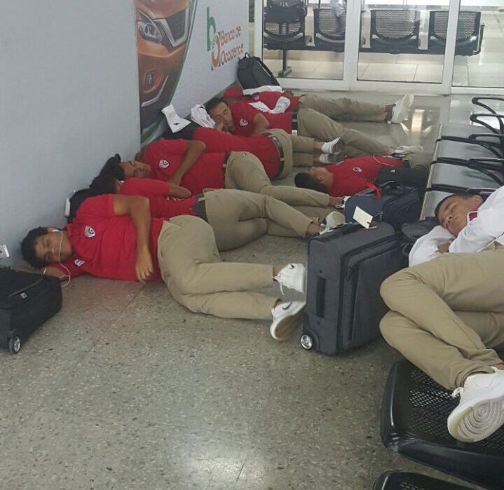 El abordaje de los ticos estaba predicho para las 6:45 a. m., pero el avión sufrió un retraso y los jugadores se quedaron varados, al darse cuenta que no iban a volar los futbolistas decidieron tirarse al piso a dormir.