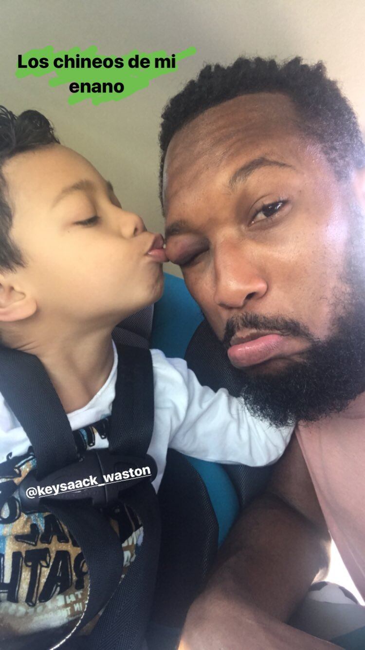 No faltaron los chineos para el gigante, quien recibió mucho cariño por parte de su hijo Keysaack.