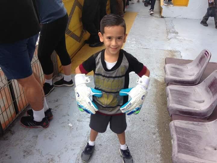 El portero del Saprissa Kevin Briceño no se resistió mucho y cedió ante la ternura e insistencia del pequeño Sergio Mena por quedarse con sus guantes.