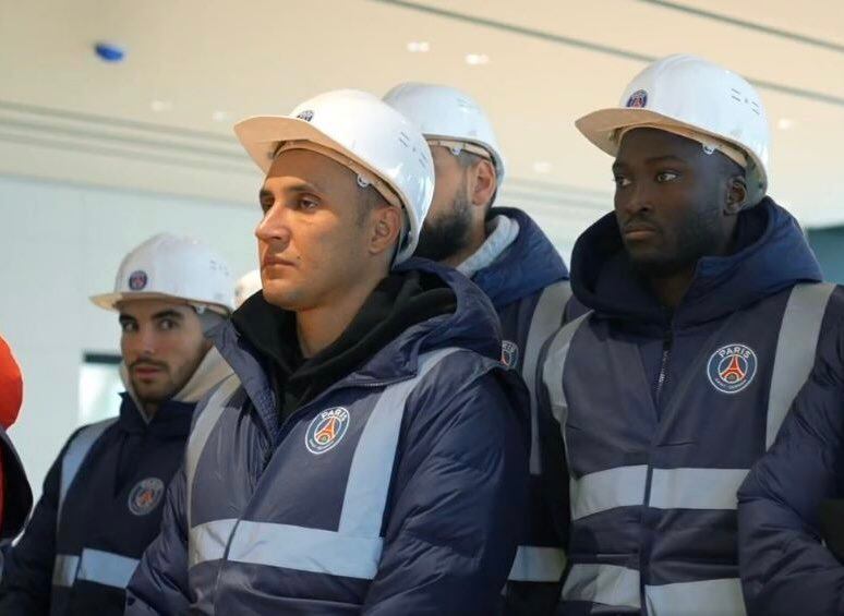 Keylor Navas cambió los guantes y los tacos por un casco de constructor y un chaleco este jueves, pero no porque haya variado de oficio, sino por una visita especial que realizaron los futbolistas del París Saint Germain.