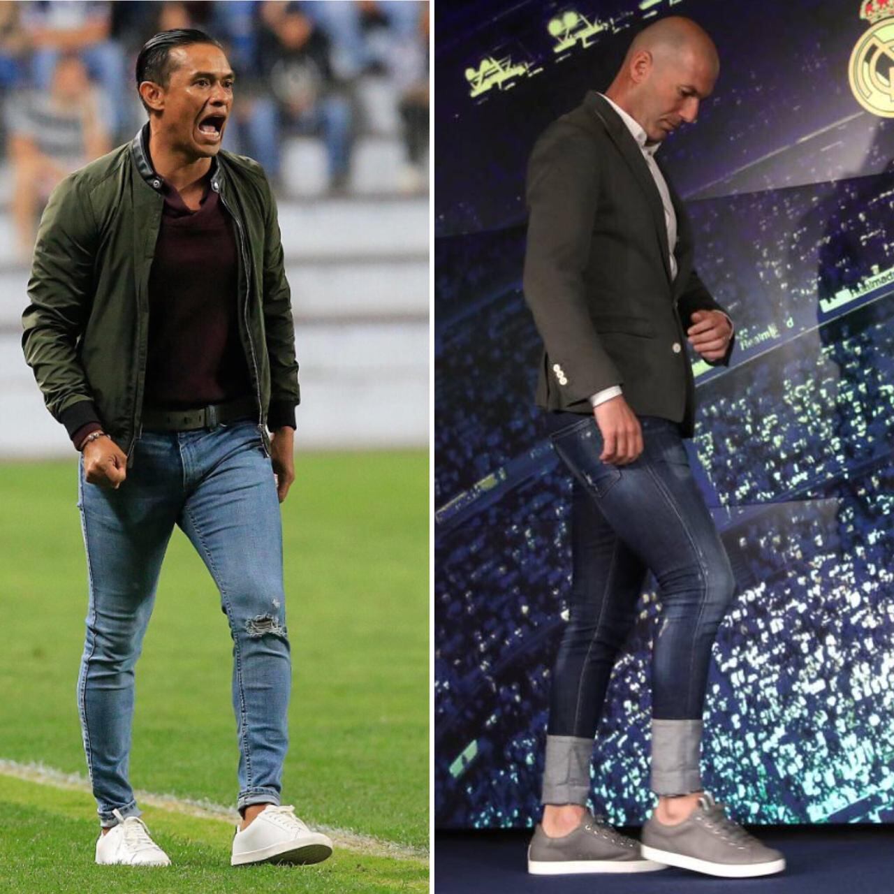 Este lunes, cuando Zizou se levantó a dar sus primeras palabras como técnico merengue, llamó la atención al lucir un atuendo muy parecido a los que usa Paté. Jeans ajustados, tenis, sin medias, camiseta de vestir y saco.