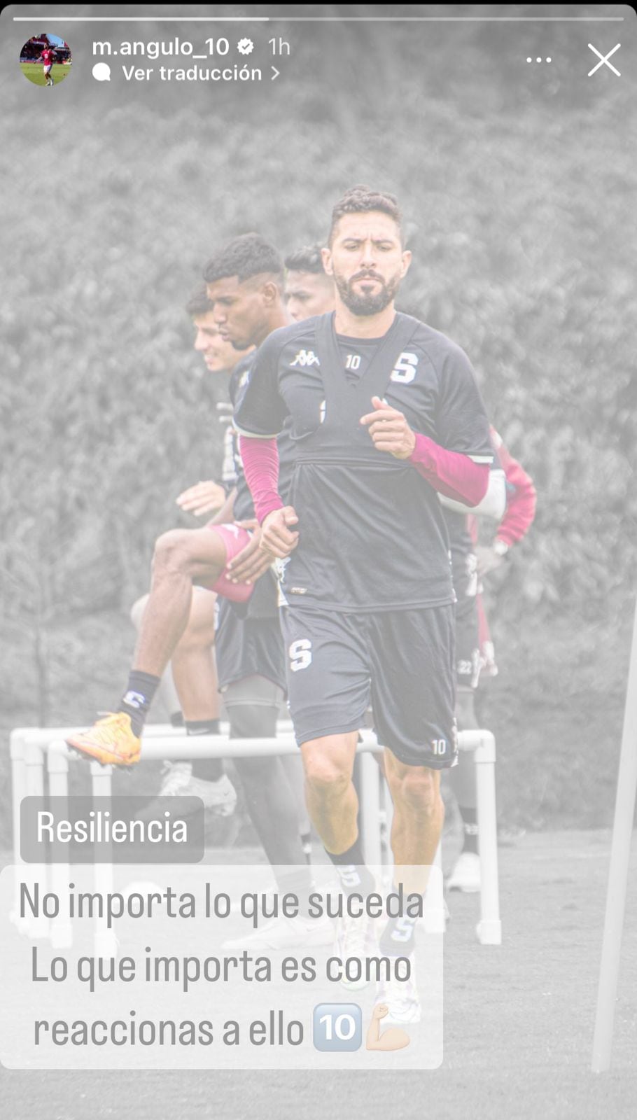 Llama la atención que este miércoles también por la noche, Marvin Angulo publicó una historia de Instagram en la que aparece una foto suya entrenando con un tono desteñido y la frase: “Resiliencia: No importa lo que suceda, lo importa es cómo reaccionas a ella”.