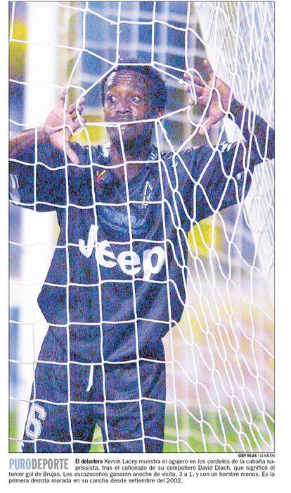 Otra postal inolvidable fue cuando el volante Kervin Lacey se asomó entre la malla por el hueco que había quedado, una cara que los futboleros recuerdan muy bien.