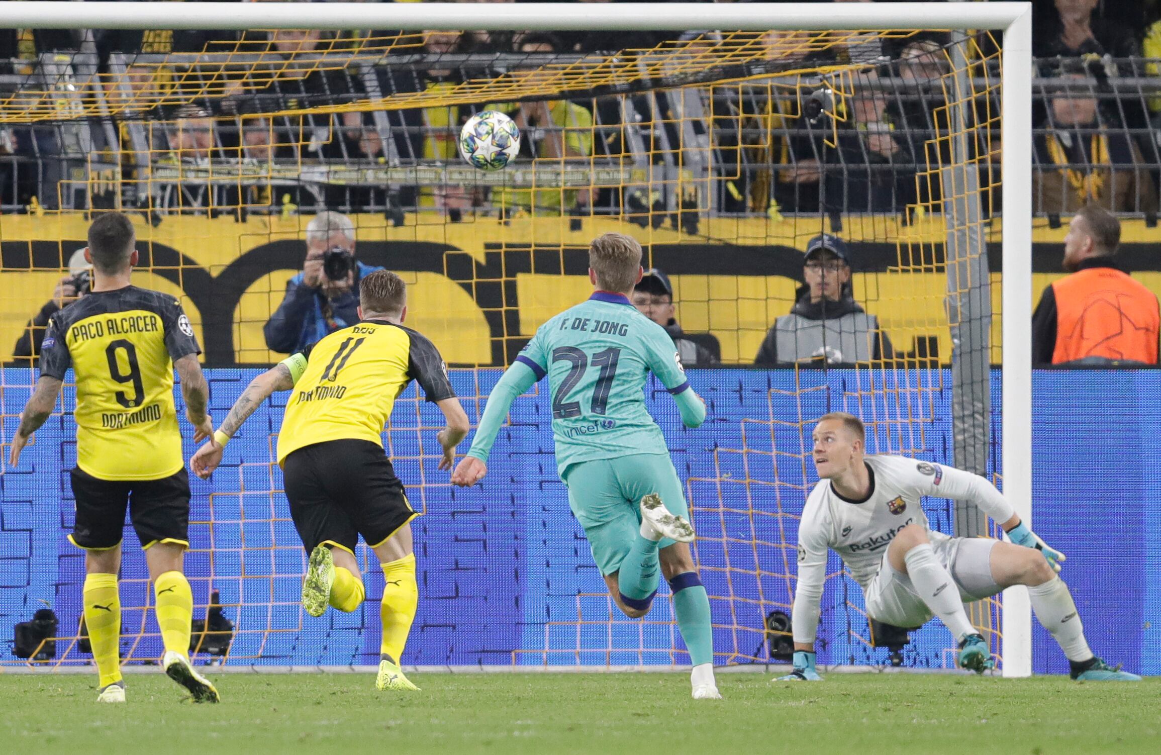 El héroe del partido para el Barça en Alemania fue el arquero Marc-André Ter Stegen, que desbarató varias grandes ocasiones de gol de los locales y que paró de forma espectacular un penal lanzado por Marco Reus en el 56.