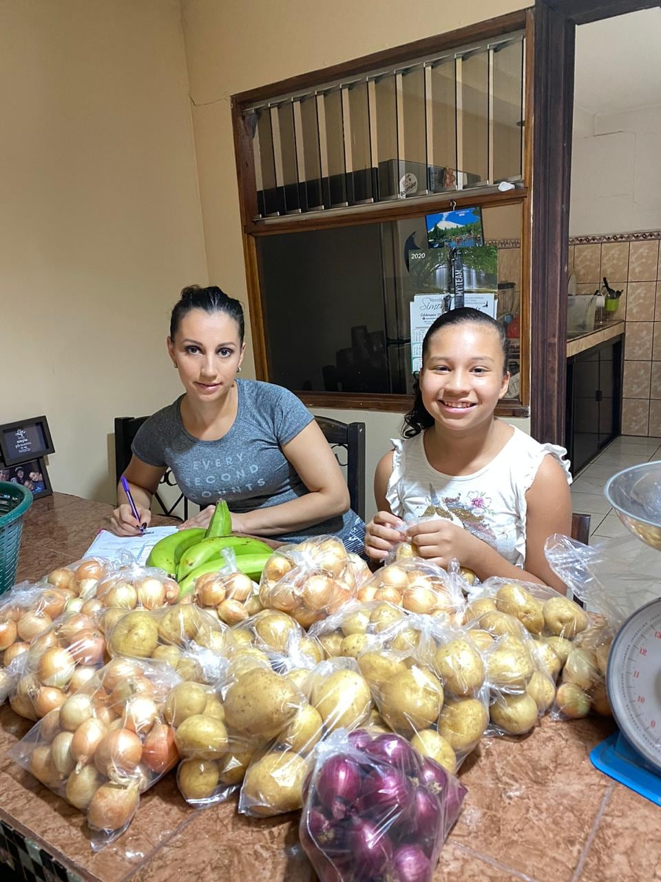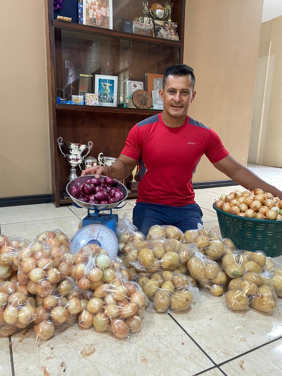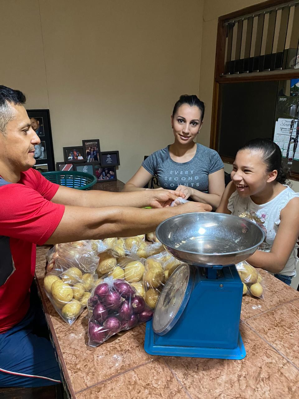 Yo conozco un productor de cebollas en el sector de Salitral de Santa Ana, así que él me lo vende a un excelente precio y lo traigo a la casa, donde con mi esposa y mis hijos hacemos los paquetes con mucho cuidado y que se vean limpios para luego irlos a entregar a las casas.