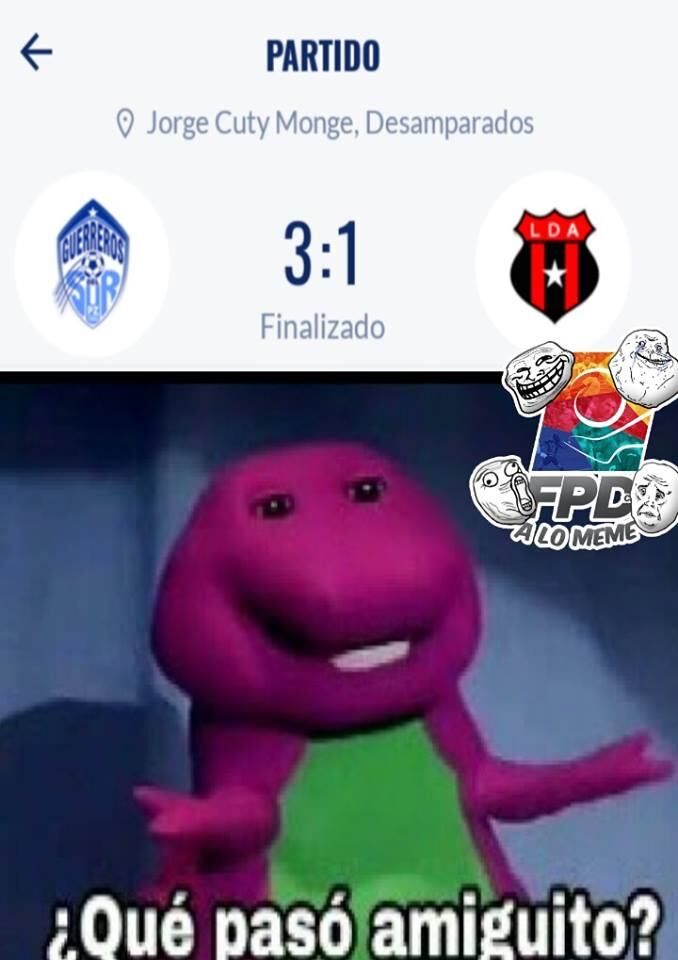 A los manudos les llovieron memes, gifs y comentarios en redes sociales, principalmente por dejar ir la punta de la tabla general un día 30 y no lograr sacarle dos puntos de ventaja al Deportivo Saprissa, que había empatado en la mañana de este domingo y que era su principal perseguidor.