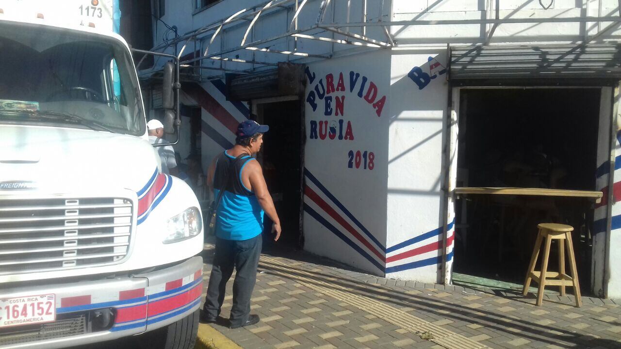 Eso dio origen a que el establecimiento tenga pintado en su fachada el lema "El pura vida en Rusia 2018", que en cierto modo hasta opaca el nombre tradicional del local.