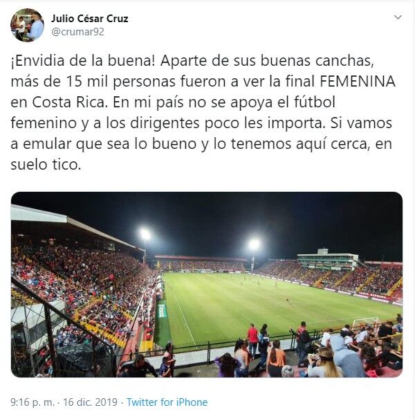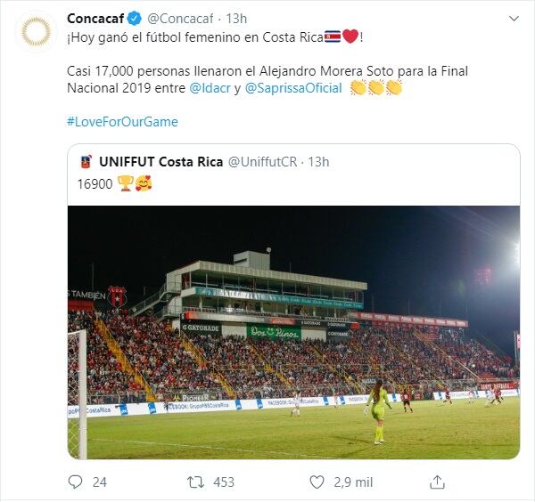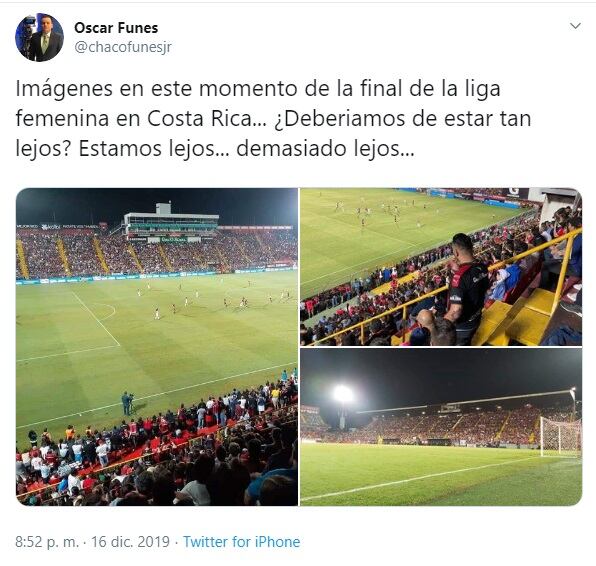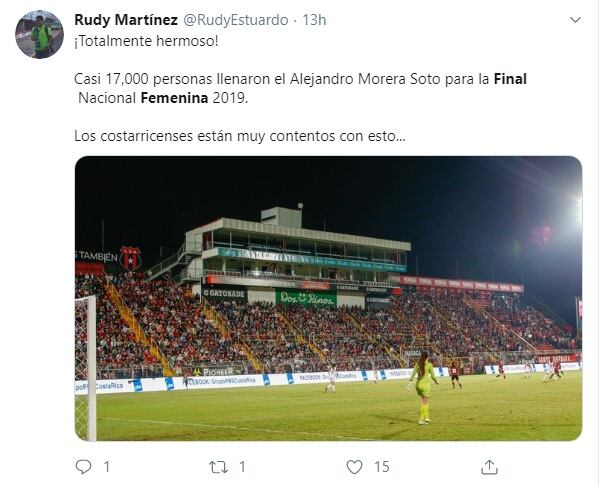 “Además tradicionalmente al fútbol femenino nunca se la ha dado el respaldo publicitario, aquí se juega prácticamente entre familia el femenino, también pienso que la realidad en Costa Rica es parte del crecimiento futbolístico como nación y esa cultura que ustedes tienen, la cultura de ir al estadio, sin lugar a dudas lo que hicieron es impresionante, es un número histórico en Centroamérica”, comentó el periodista Camilo Mejía, de Fútbol Nica.