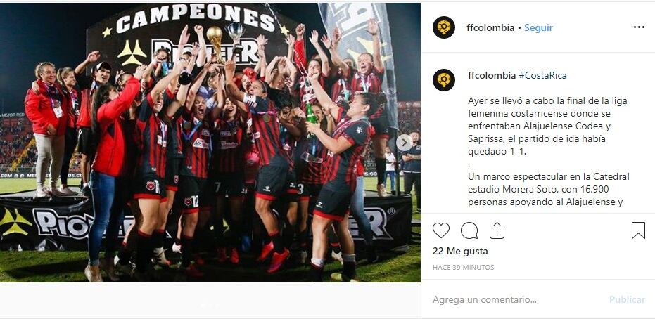 “Un marco espectacular en la Catedral, estadio Alejandro Morera Soto, con 16.900 personas apoyando a Alajuelense y Saprissa”, escribió la página FFColombia en su perfil de Instagram.