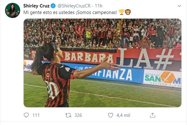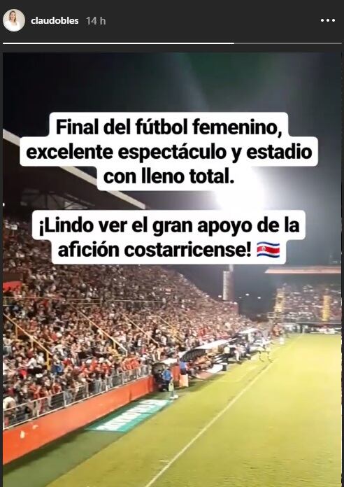 “Costa Rica se unió a los locos”, publicó la jugadora arriba de cinco fotos de la Catedral a reventar, junto con emoticones de una bola de fútbol, de manos aplaudiendo y de una carita enamorada.