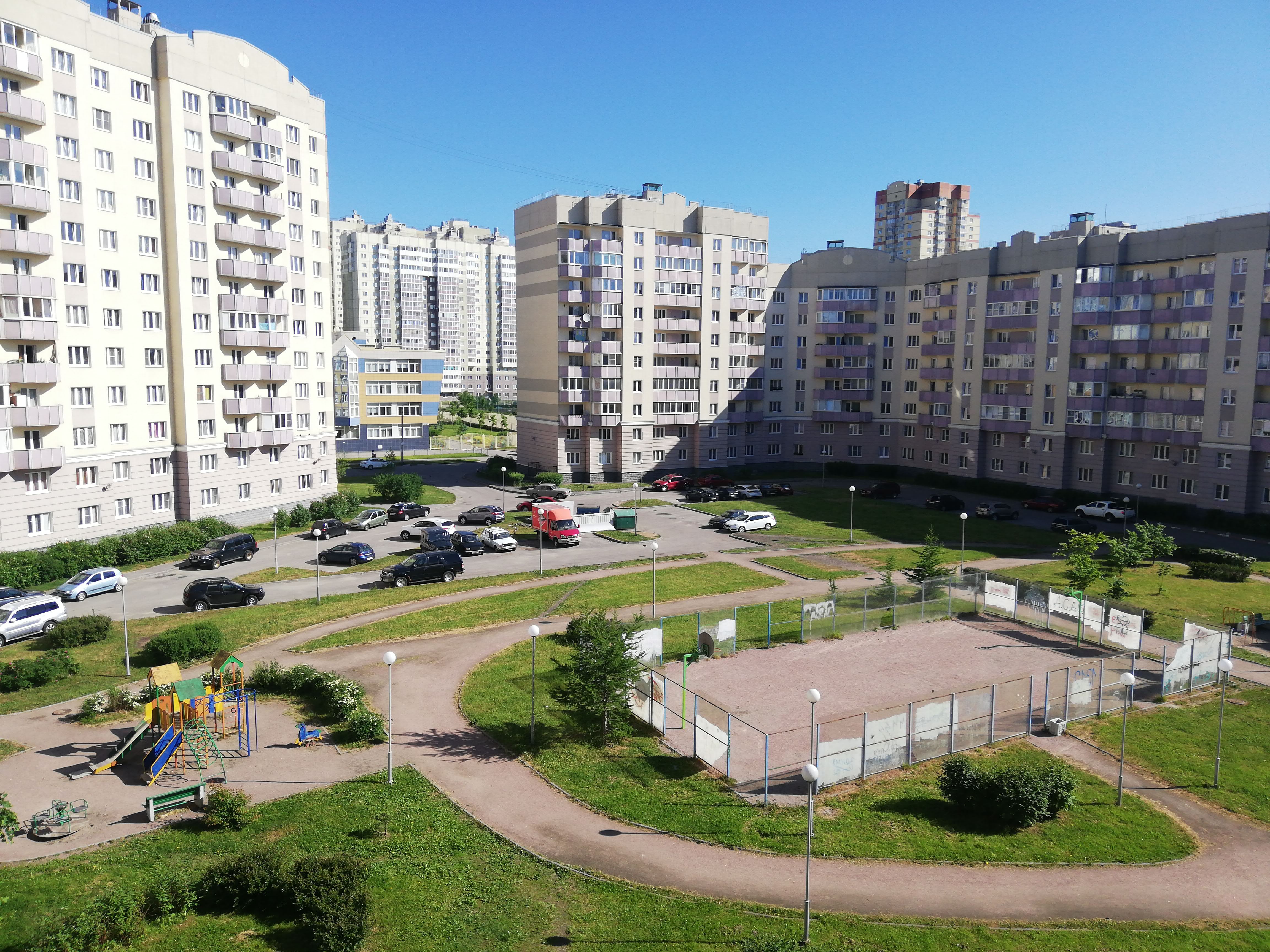 En San Petersburgo, por ejemplo, a una hora de distancia del centro se encuentran montones de torres de apartamentos y por lo general en el primer piso hay un pequeño supermercado, tirando a la pulpe del chino que tenemos en nuestros barrios.