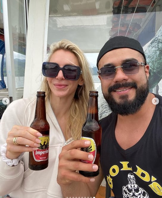 Con birras en mano y unas vistas espectaculares, la superestrella de la WWE Charlotte Flair y su esposo, él también luchador Andrade El Ídolo, la siguen pasando de lo lindo en Costa Rica.