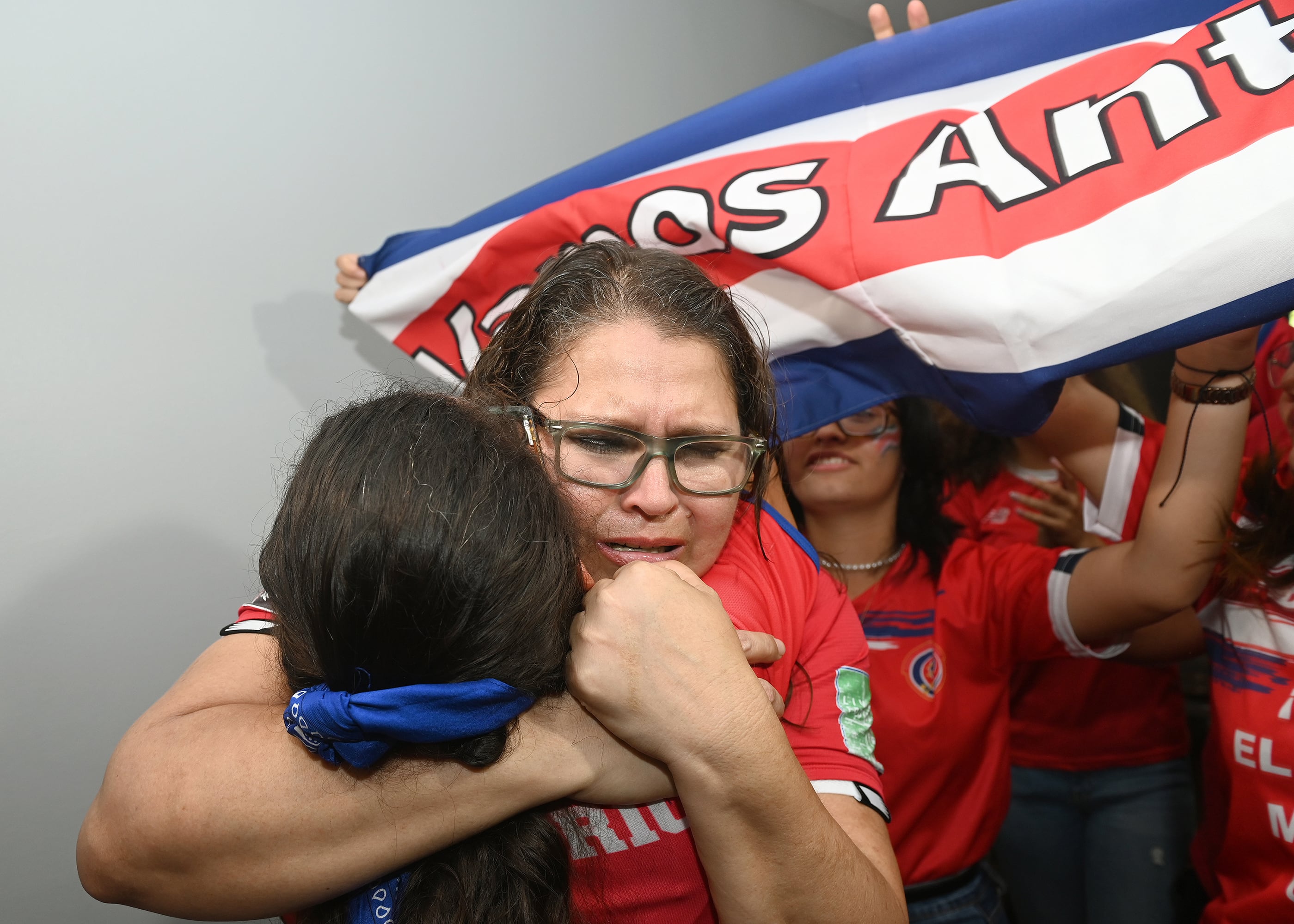 Cuando el partido iba por el minuto 94, el central, de Emiratos Árabes Unidos, dio el pitazo final y doña Mildred se levantó, gritó a más no poder, posiblemente botando el estrés que le provocó el juego y comenzó a abrazar a cada uno de sus seres queridos.
