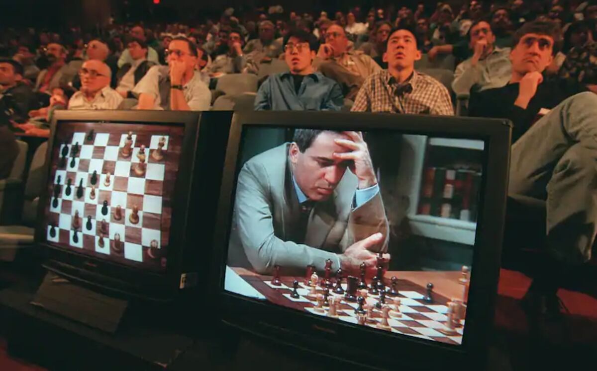 En 1997, se enfrentaron de nuevo, en el que fue llamado “el más espectacular duelo de ajedrez de la historia”. En esa ocasión, la supercomputadora Deep Blue, que había sido mejorada desde el anterior encuentro, ganó a Kasparov 3½–2½ (+2 =3 -1), por lo que podía considerarse que una máquina era la campeona del mundo.