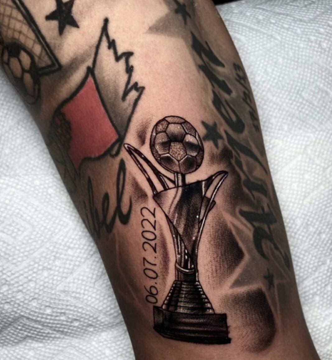El volante se hizo un tatuaje con el trofeo que obtuvo con el Cartaginés y la fecha, y lo mostró orgulloso en las historias de Instagram.