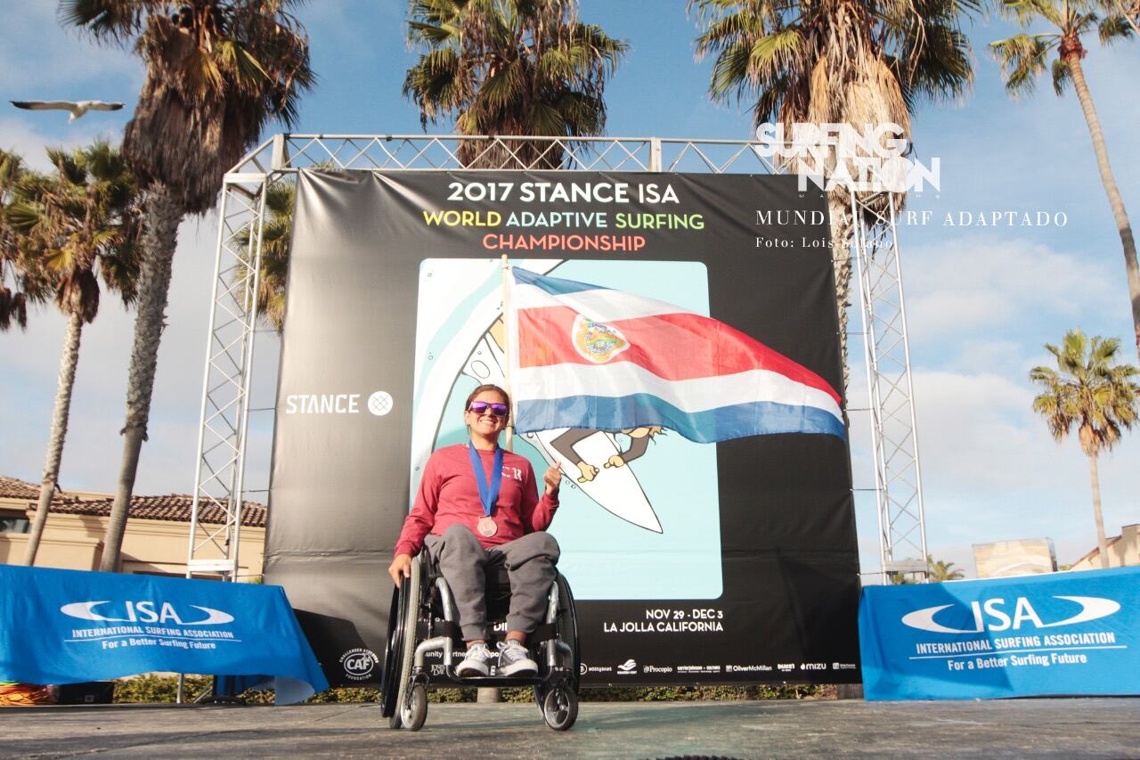 Fue a partir del año pasado que comenzó a meterle duro a los entrenamientos para prepararse con todo de cara al tercer Mundial de Surf Adaptado que organizó la Asociación Internacional de Surf. Ella es la primera mujer que participó y, además, ganó la medalla de bronce para Costa Rica.