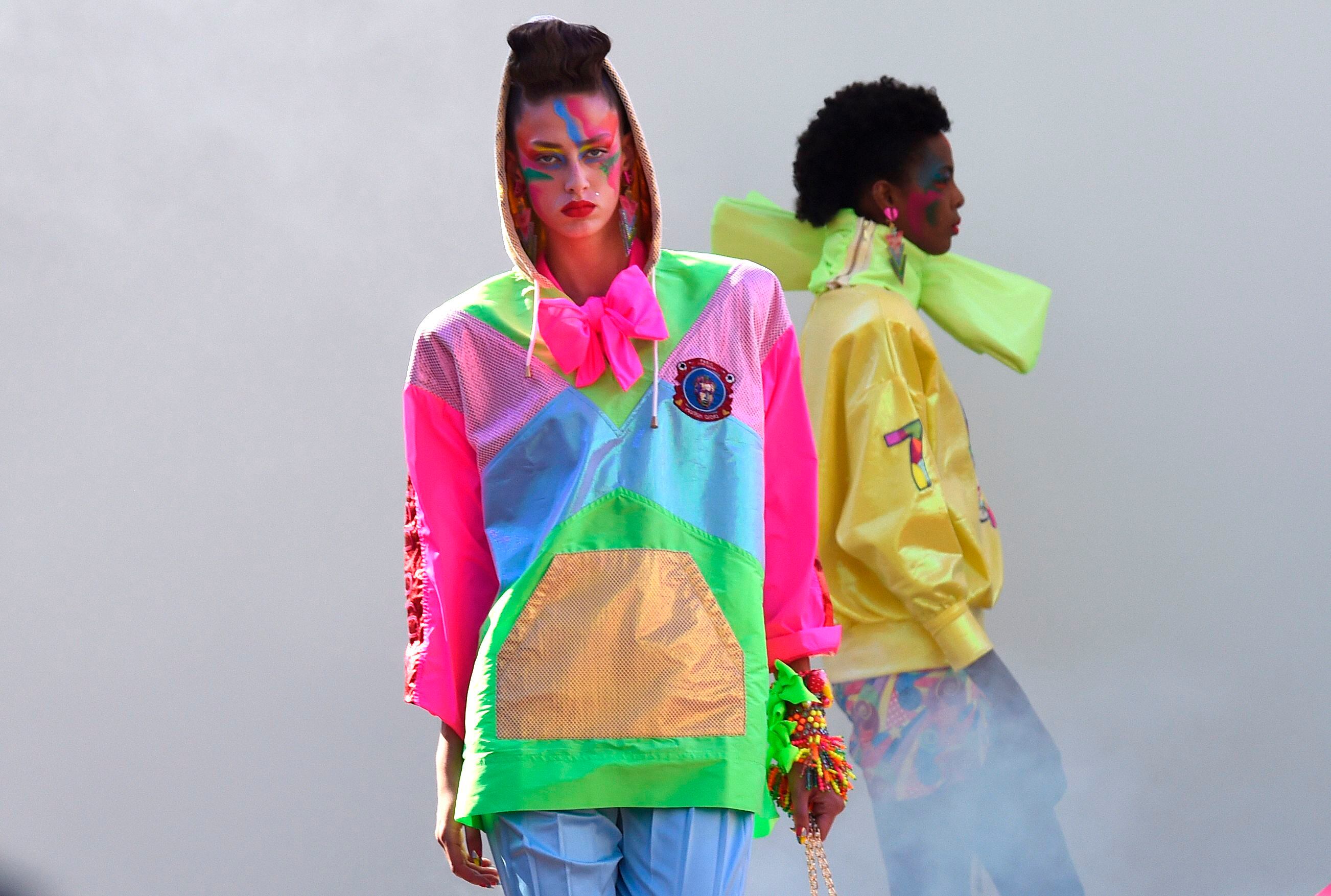El estilo atrevido del exdirector artístico de Paco Rabanne dio un paso más allá en esta colección, que lleva por nombre el título de la famosa canción de Cindy Lauper de 1983, "Girls just want to have fun" (Las chicas solo quieren divertirse).