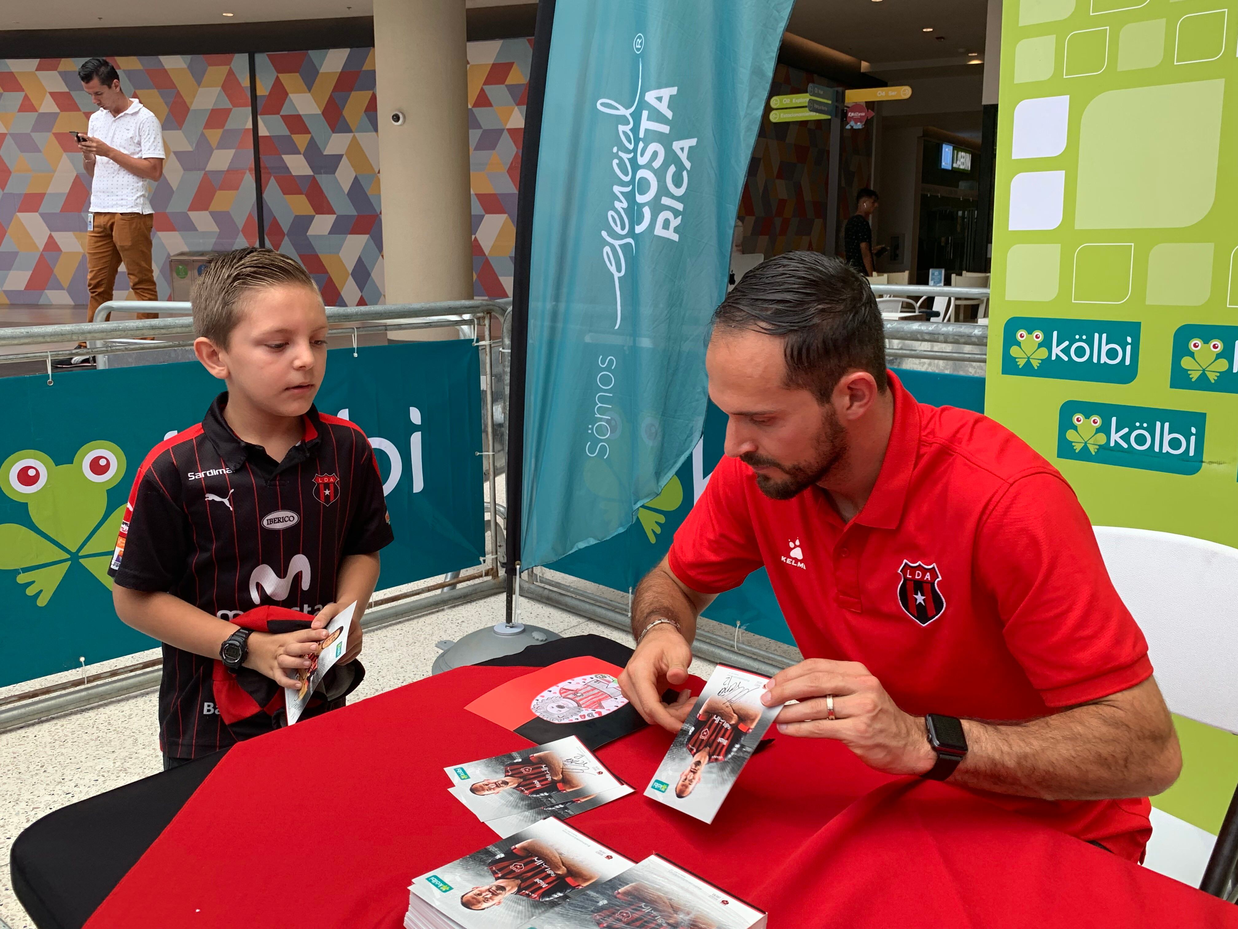 En el primer piso del mall Oxígeno en San Francisco de Heredia, cerca del área de comidas, Marco Ureña, Jonathan Moya y Cristhopher Meneses estuvieron por dos horas con la gente, repartiendo recuerdos y escuchando los pedidos de la gente.