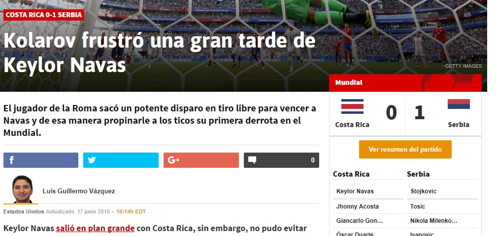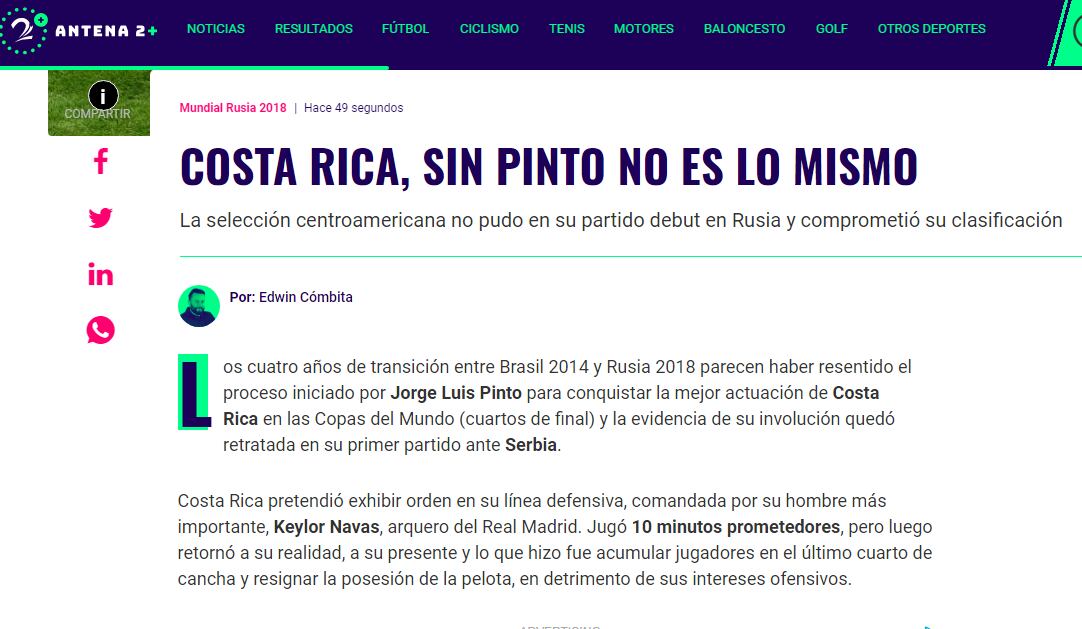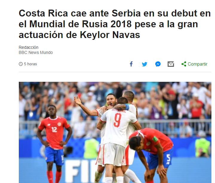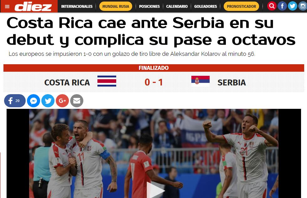 Luego de la hazaña que realizó la Sele en Brasil 2014, la mayoría de medios internacionales le guardan cierto respeto al combinado patrio, pero este domingo, después de que la Tricolor cayera 1-0 contra Serbia, destacaron que al combinado tico se le acabó la magia.