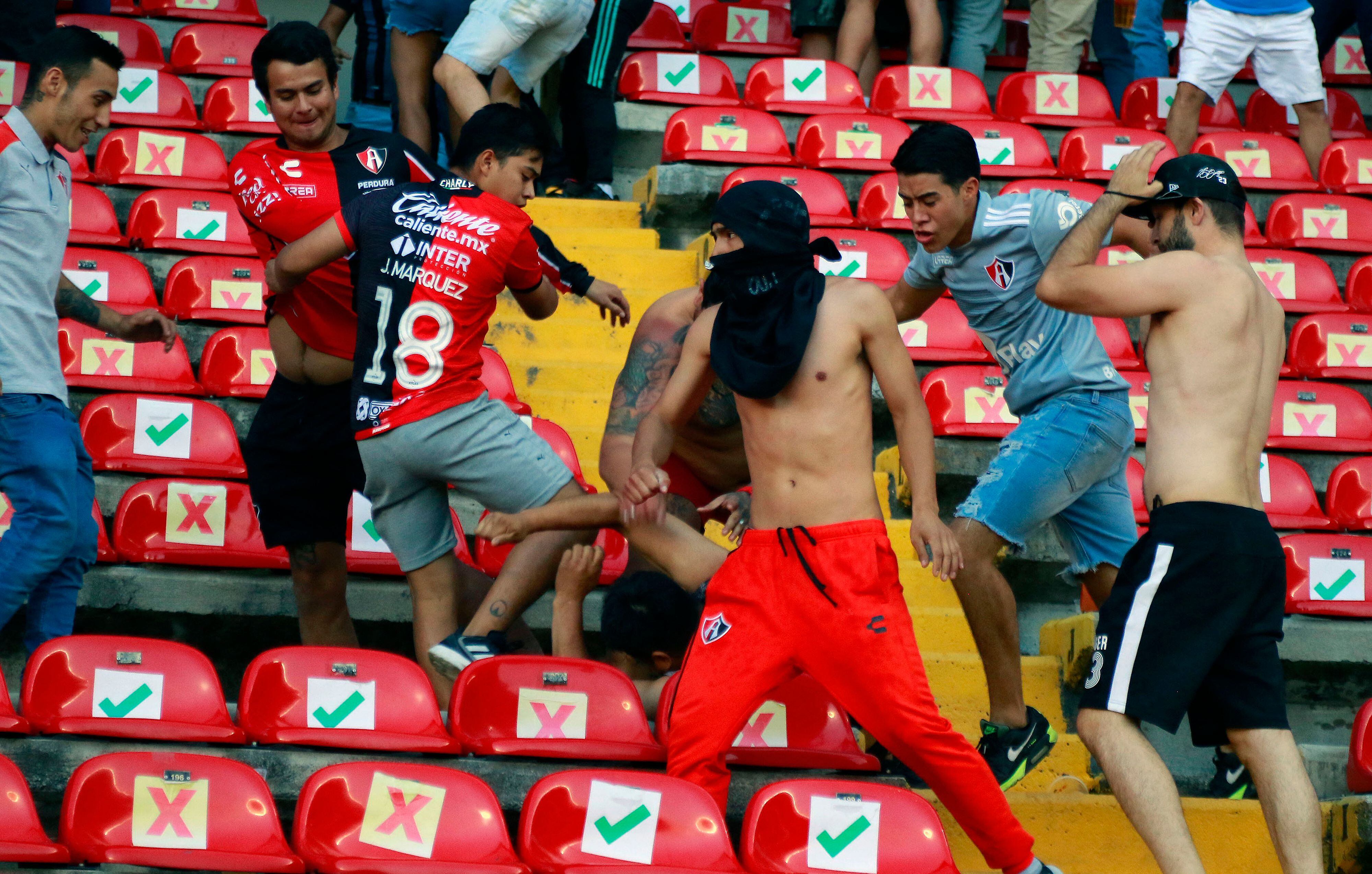 Una atroz riña entre barras bravas de Querétaro y Atlas ocurrió en el estadio La Corregidora.