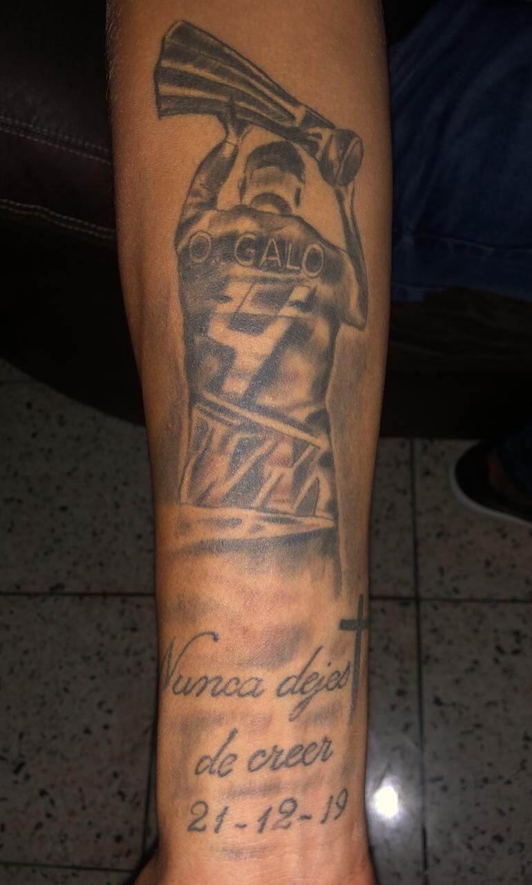Lo que más lo puso a pensar fue en qué parte del cuerpo hacérselo, pero después de varias conversaciones con su tatuador (Allain Leiva) decidieron que por la forma de la fotografía se le vería bien en esa parte del brazo.