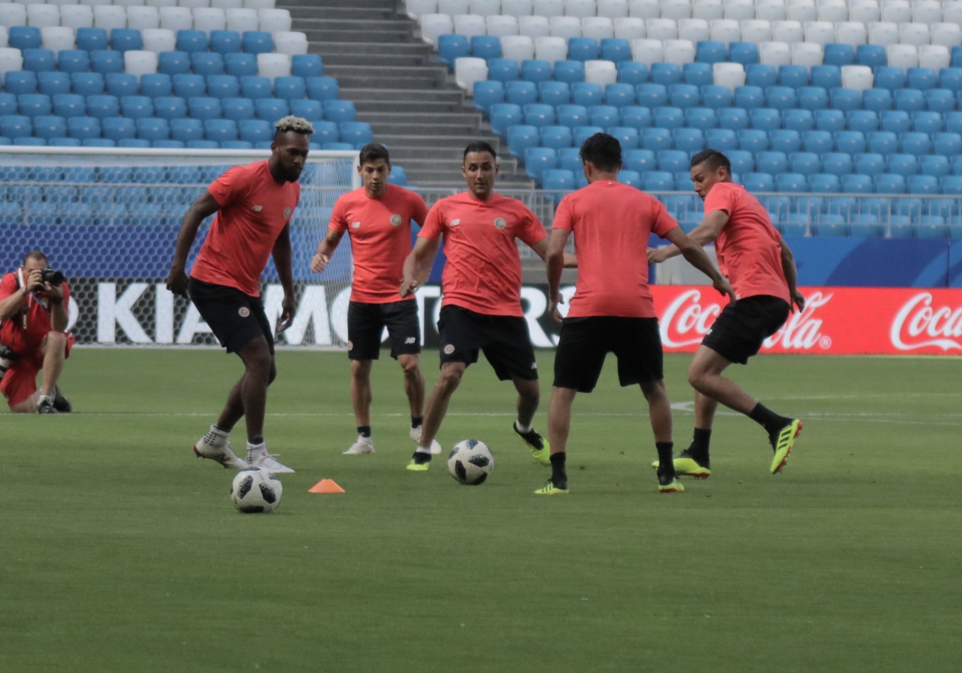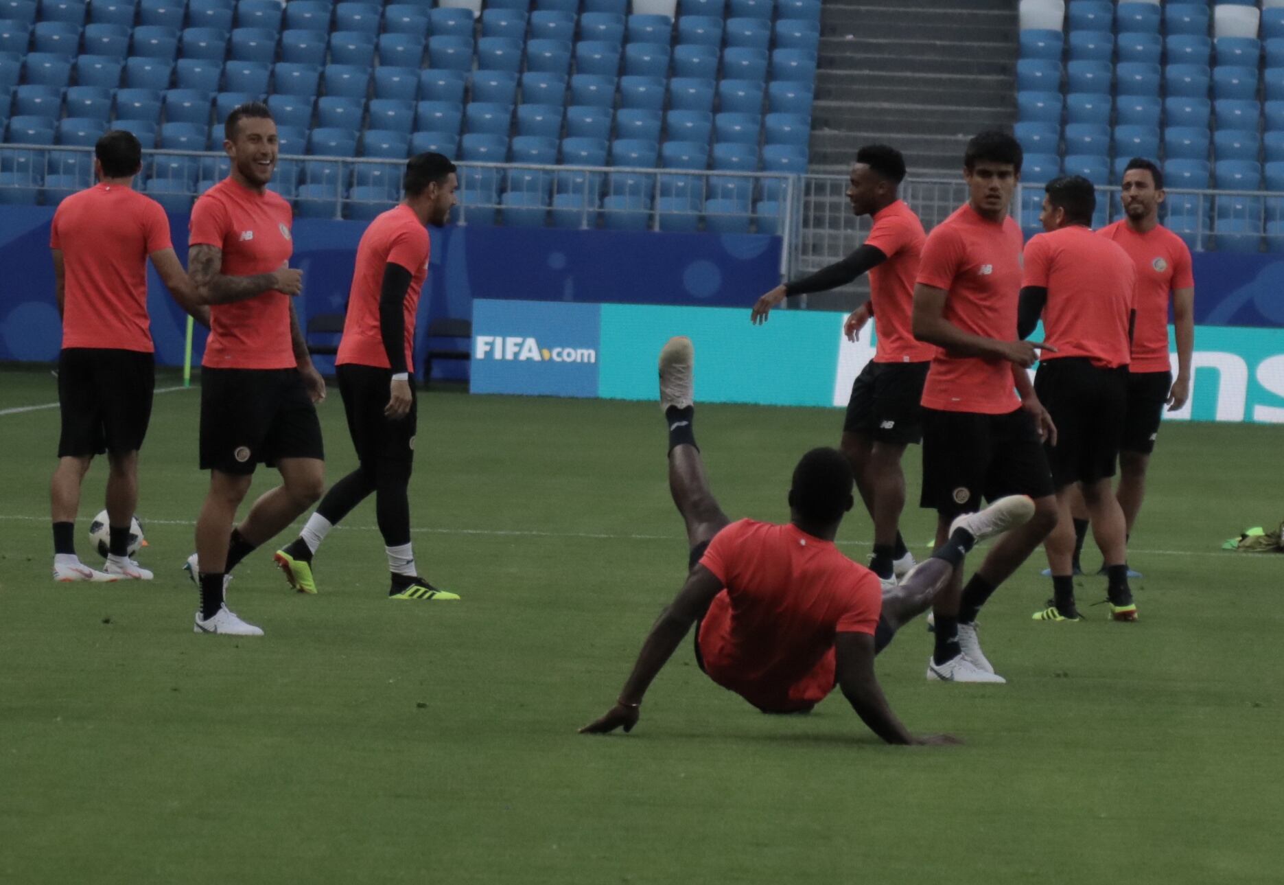 El Macho habló con los medios de comunciación ticos e internacionales y después junto al resto del equipo pasó al reconocimiento oficial de la cancha del Samara Arena.