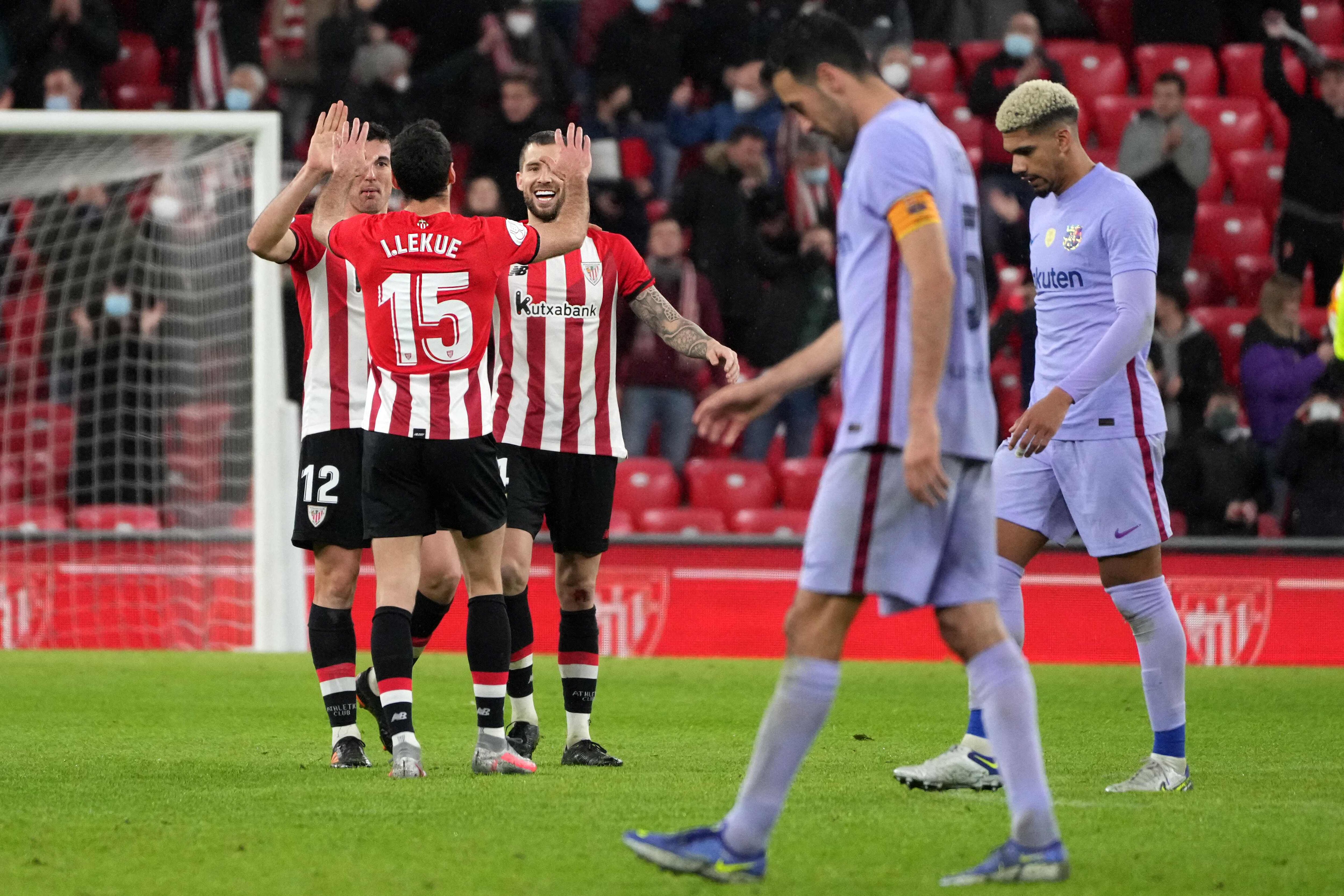 En el tiempo de prolongación, Jordi Alba cortó con la mano un centro de Nico Williams, que el árbitro sancionó con un penal, transformado por Muniain lo que fue definitivo para la eliminación culé.