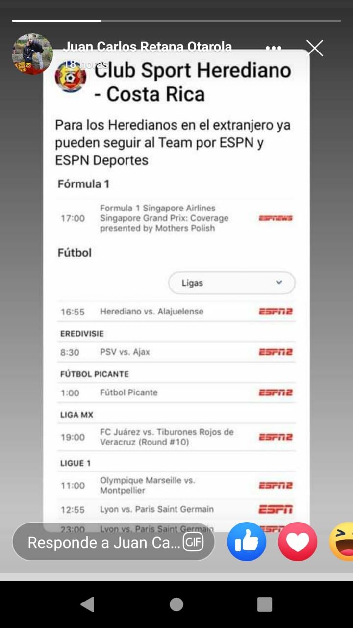 En medio de diversos colerones que se ha pegado el Herediano en las últimas semanas en el aspecto futbolístico, a los florenses les llegó una buena noticia porque a partir de este domingo, sus partidos de local serán transmitidos por la cadena ESPN.