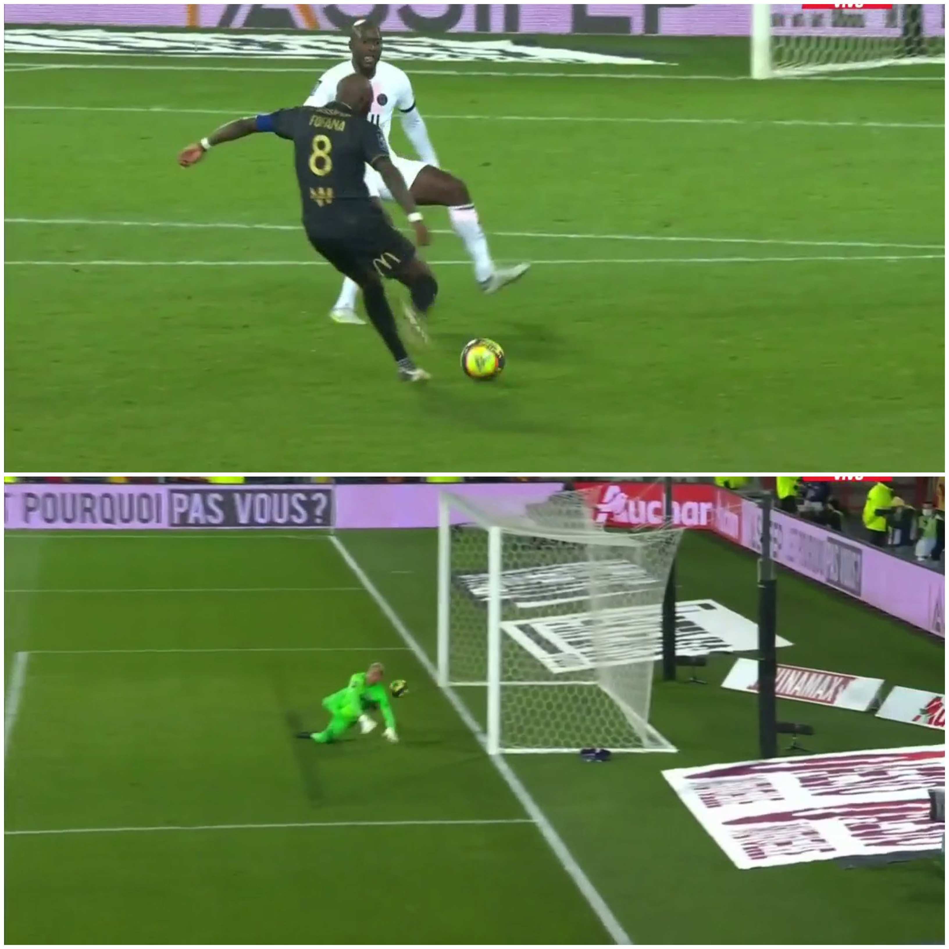 Lionel Messi tirado en el campo de juego, remate de Fofana y grave error de Keylor Navas. Gana el #Lens por la mínima en la #Ligue1. pic.twitter.com/Wpcr0r0FZF